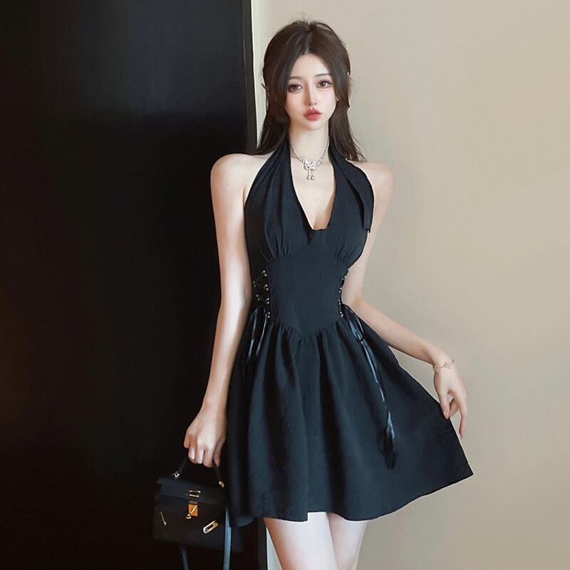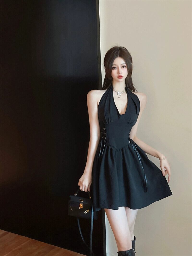 ダンスアンカー服バージャンプディスコ服女性の衣装黒スリムセクシーなバッグヒップサスペンダードレス ブラック yeyij14600120750