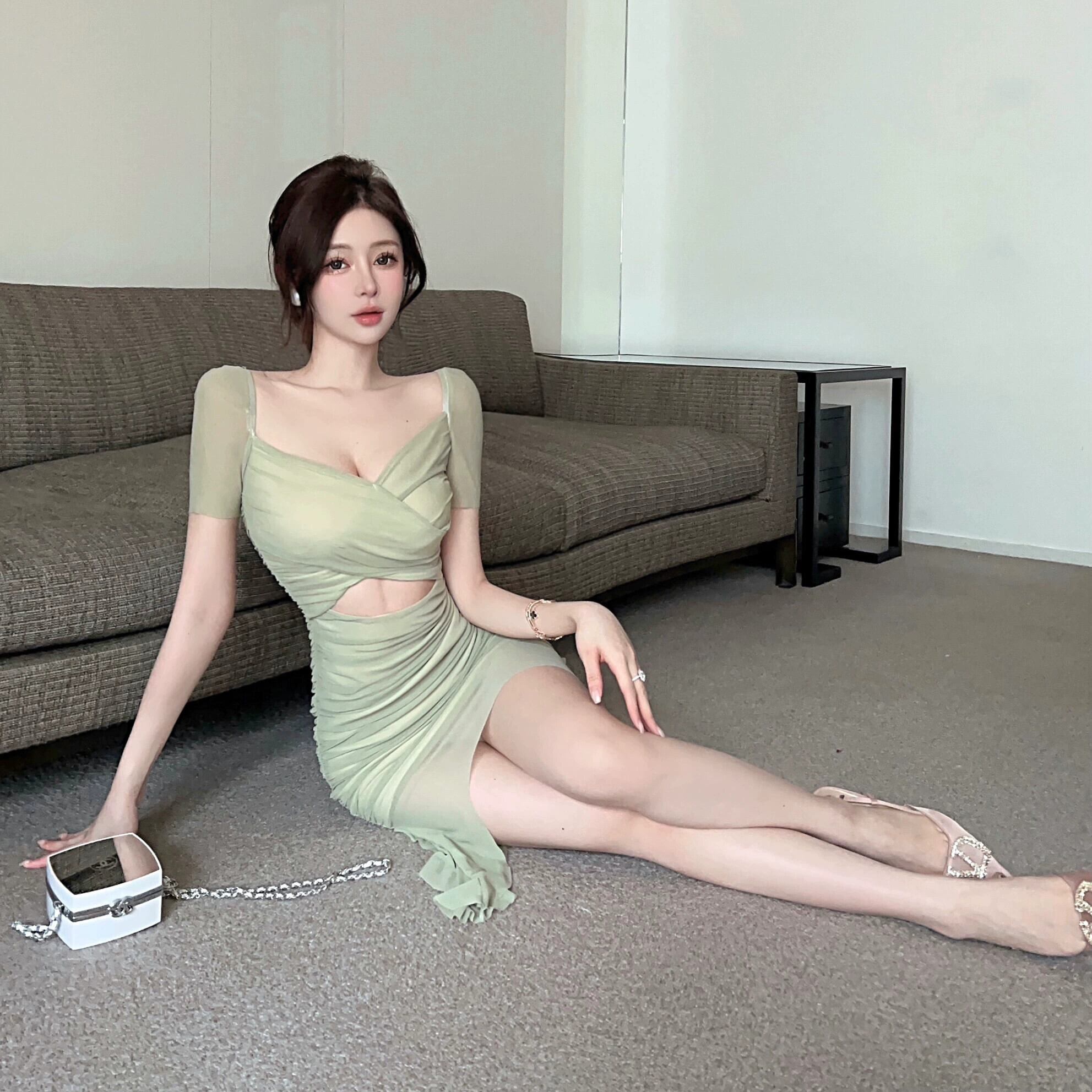ナイトクラブの女性の夜の作業服作業服セクシーな V ネック中空スーパーフェアリーメッシュ半袖ヒップドレス Vネック yeyij54160351155