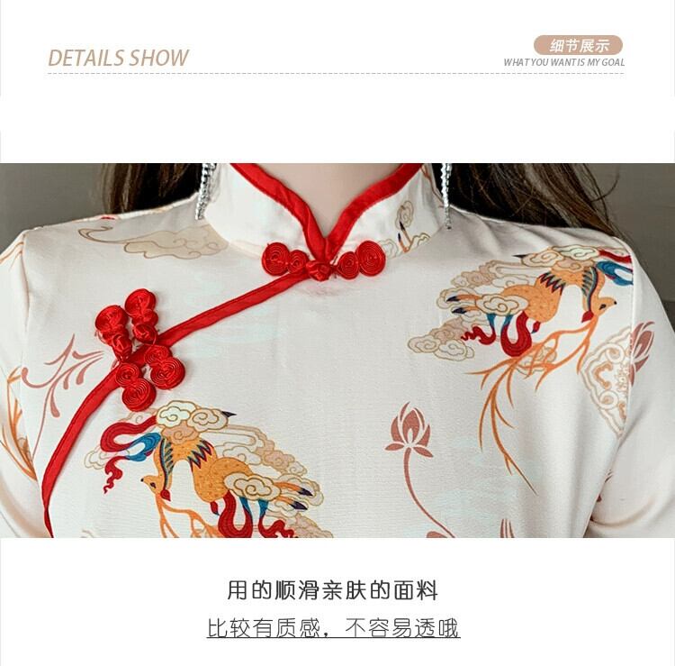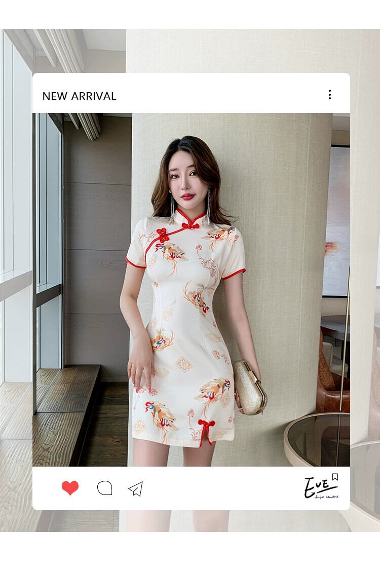 中国風の印刷改善チャイナドレス 2023 新しいナイトフィールド技術者作業服ショートバッグヒップドレス女性の夏 サマー 夏物 yeyij7801252994