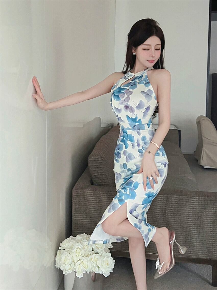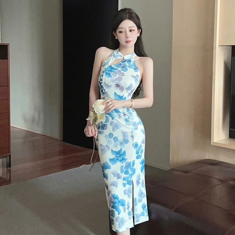 ライブ服女性アンカー pogenic 若いセクシーなストラップレスのミッドレングス首吊り改良されたチャイナ ドレス yeyij26383044711