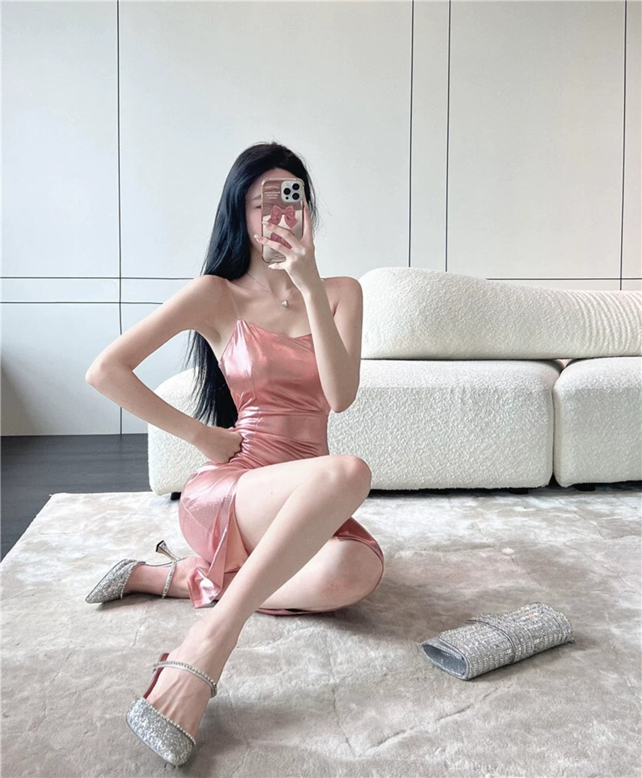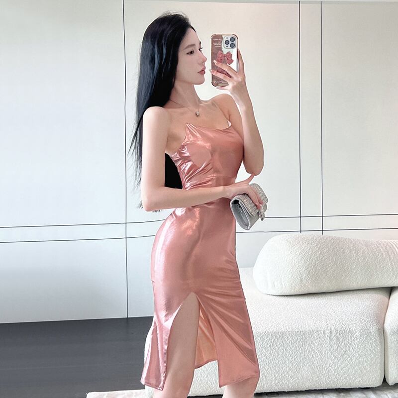 明るいイブニングドレスの女性 2023 新しいハイエンド宴会気質セクシーなスリムスリットサスペンダードレス yeyij48153441021