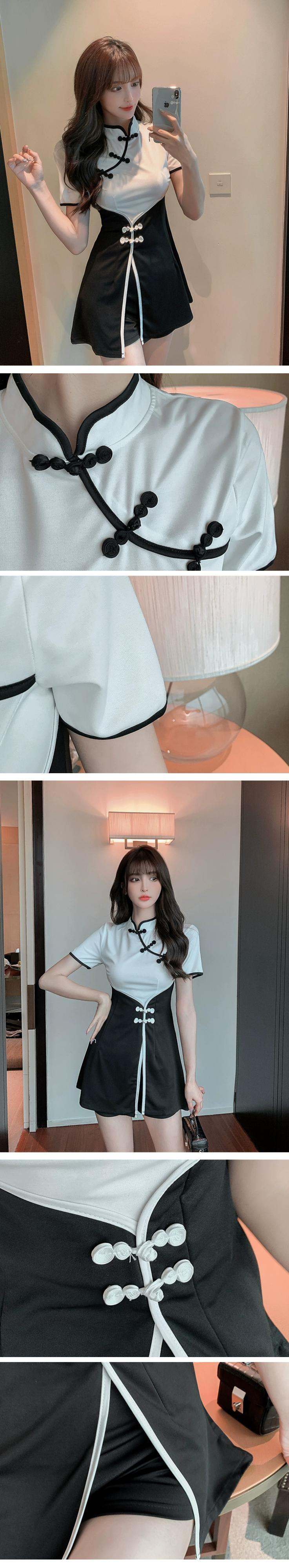 ペディキュア女性技術者の服白黒服フットバスショップチャイナドレス+ショーツ作業服スーツ作業服夏 ホワイト ブラック サマー 夏物 ブルマー yeyij5784046758