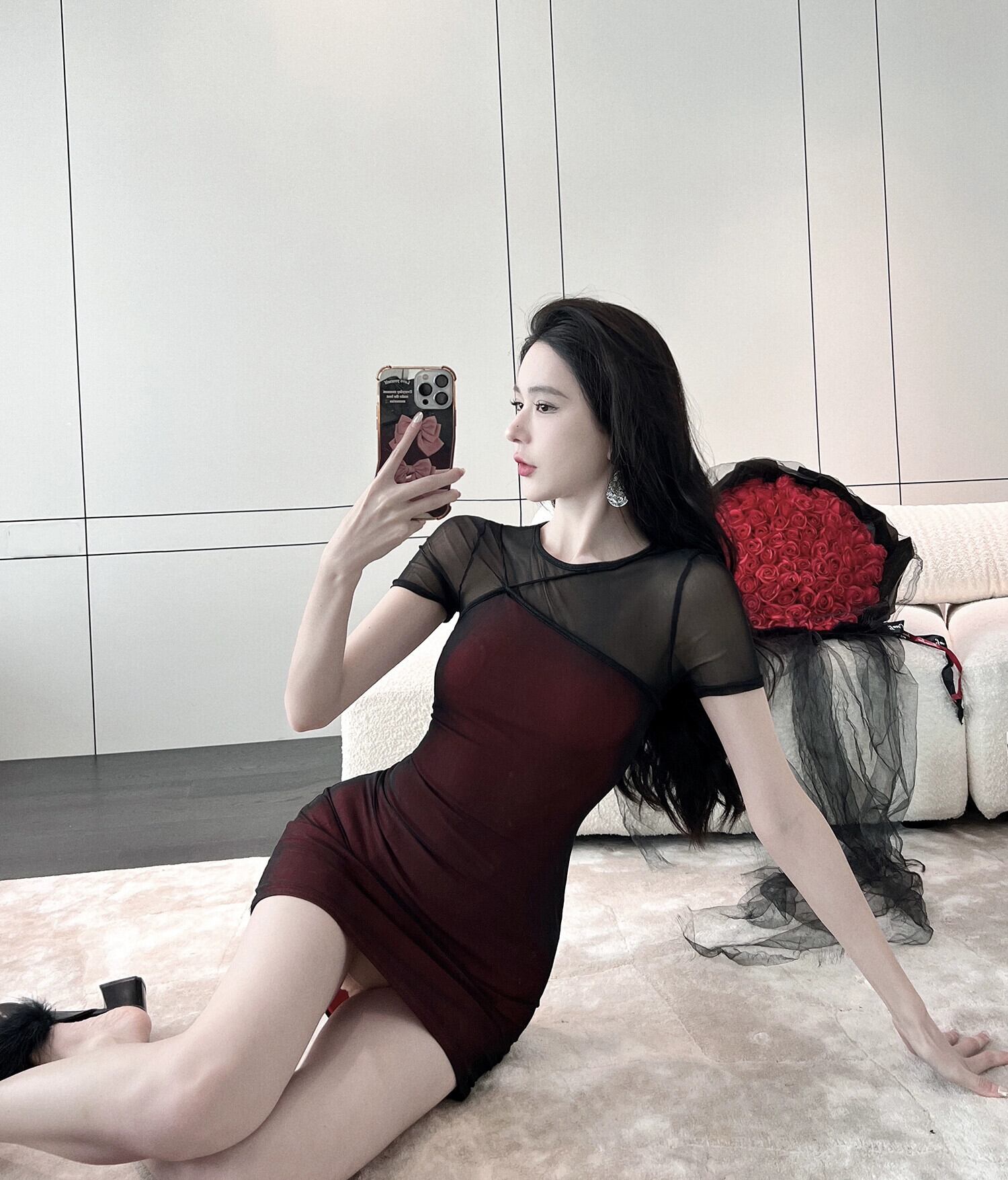 ライブ服女性アンカー pogenic ハイエンド気質セクシーなメッシュステッチ半袖タイトフィットヒップドレス yeyij40671107826