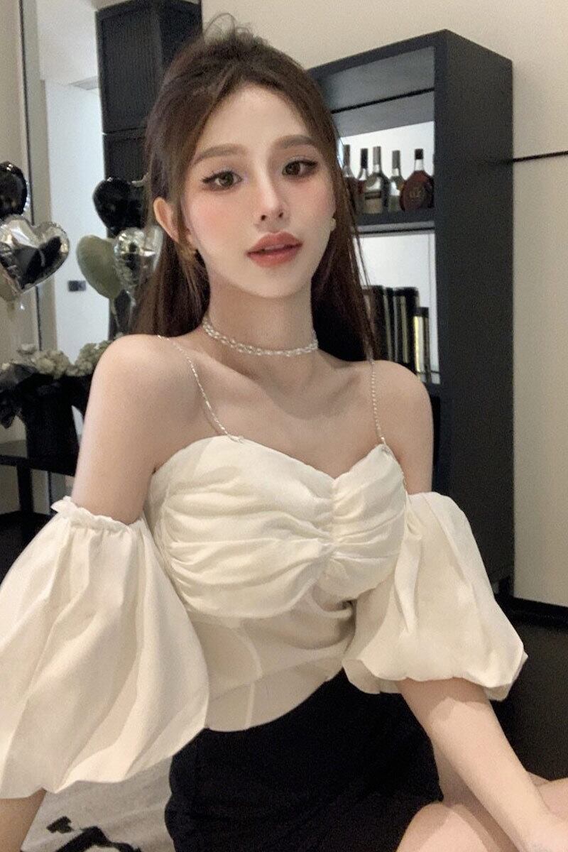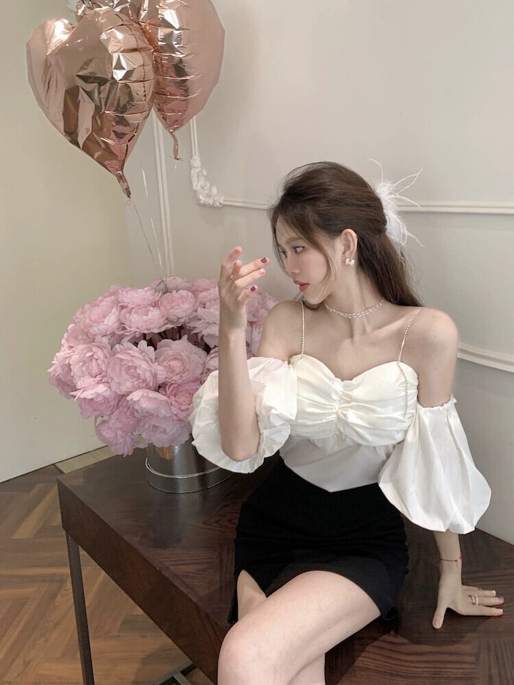 ライブ衣装、女子アナ、ポージェニック、ハイエンド、スイートアンド、ピュアディザイア、フレンチランタンスリーブ、セクシーキャミソールトップ 大人ガーリー スウィート キュート カジュアル yeyij41886525198