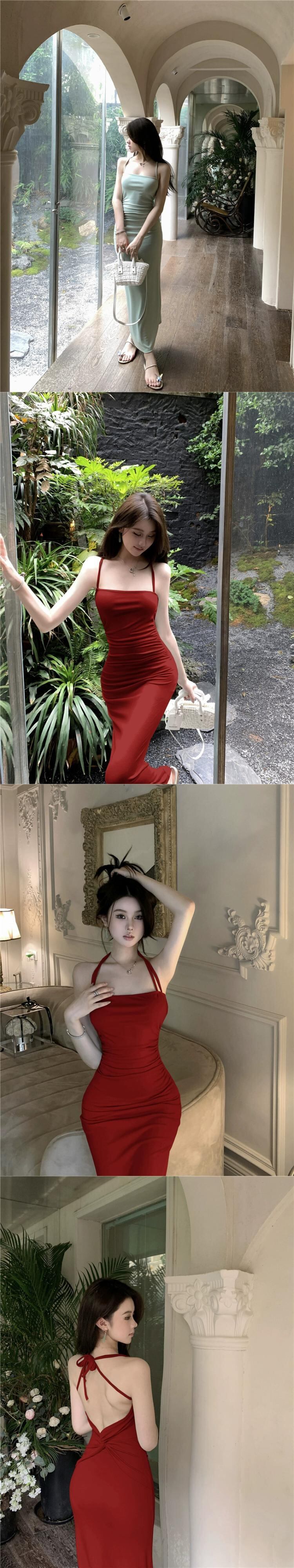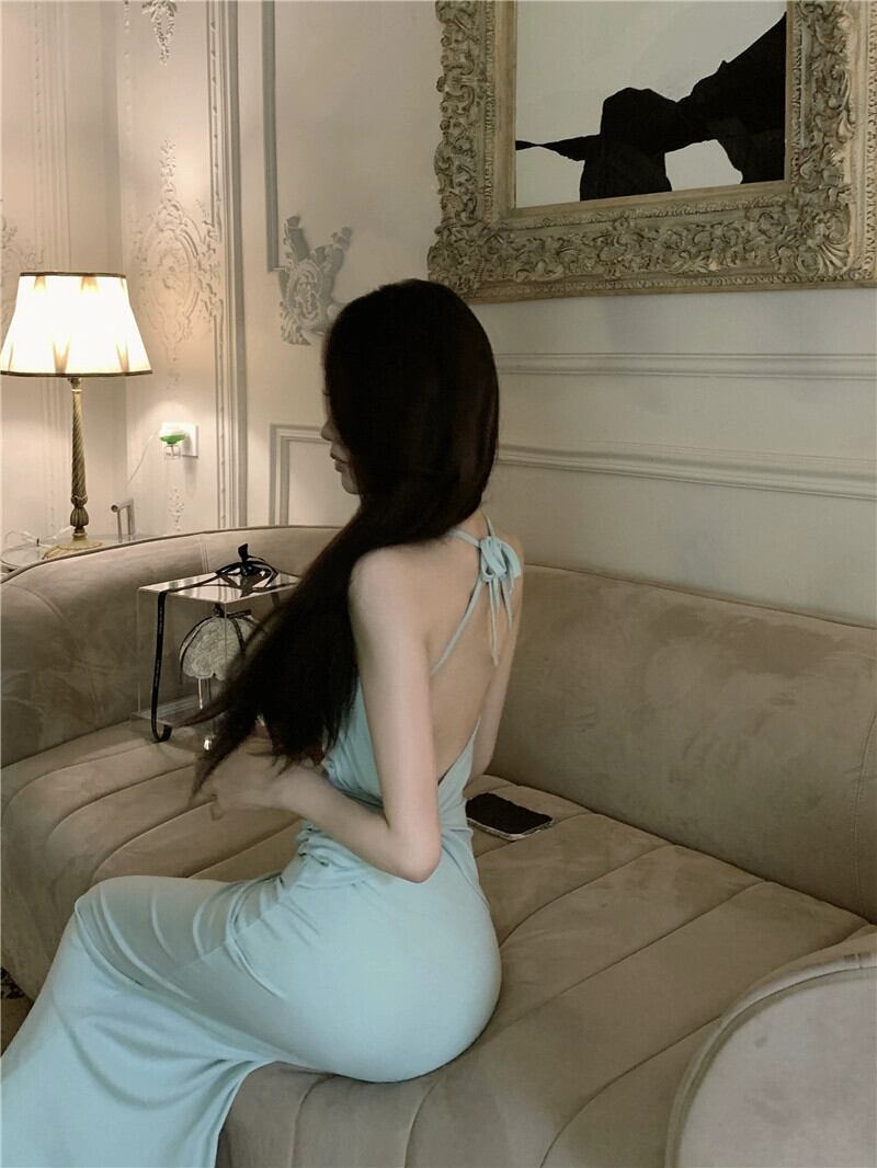 フランスの純粋な欲望のセクシーなバックレスドレス 2023 新しい夏の休日スタイルのシックなユニークなロングスカート サマー 夏物 ピュア yeyij9683786012