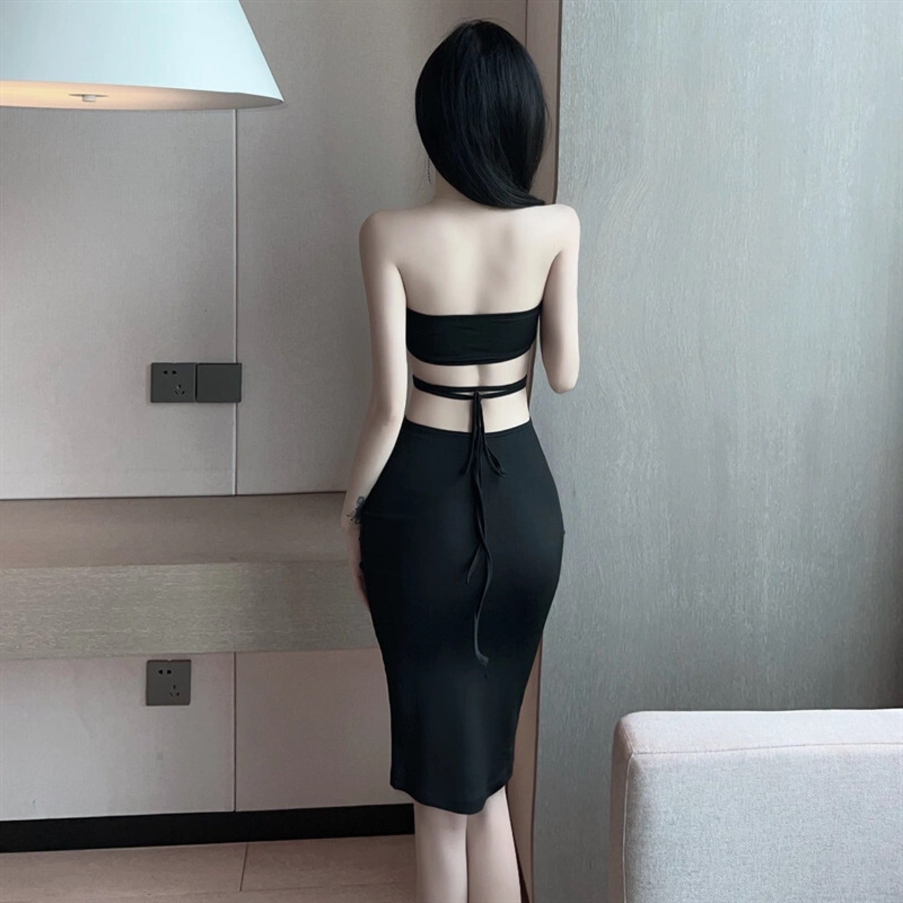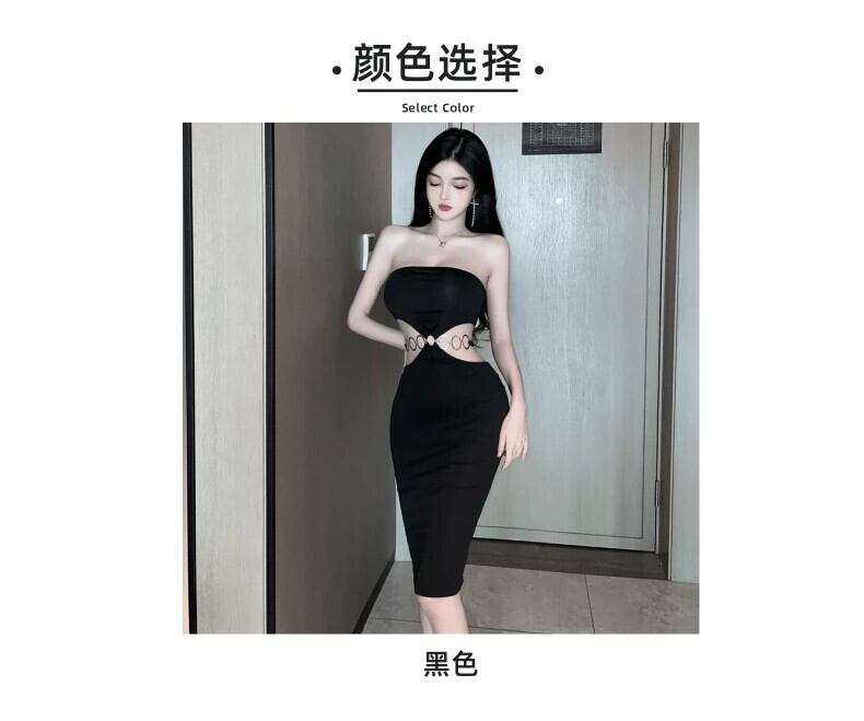 ナイトクラブの女性の夜の作業服オーバーオール黒のセクシーな中空アウトウエストワンショルダーチューブトップドレス ブラック yeyij92214603479