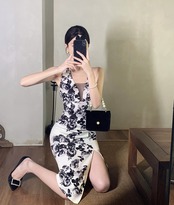 イブニングドレス スカート 女性らしさ ライト ラグジュアリー ニッチ ハイエンド フレンチ セクシー V ネック メッシュ ステッチ ホルター ネック ドレス Vネック yeyij60730463874