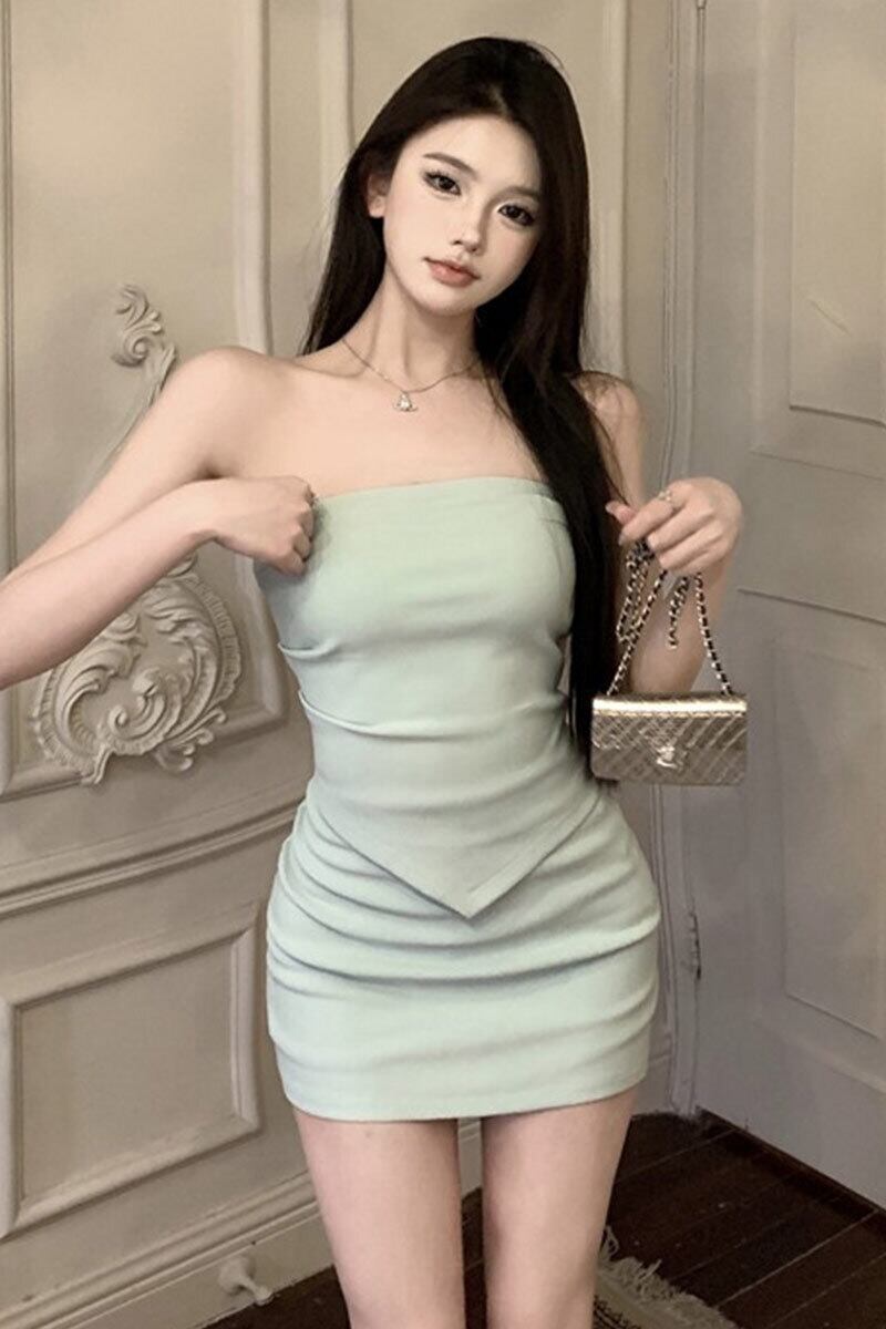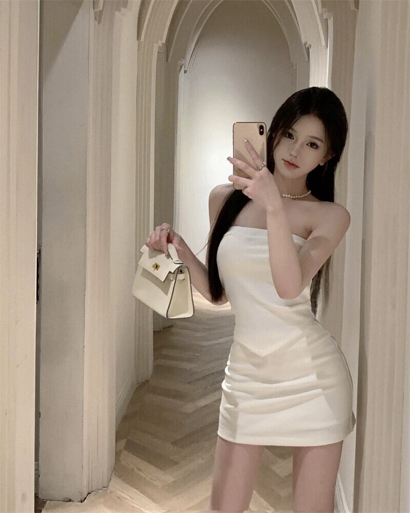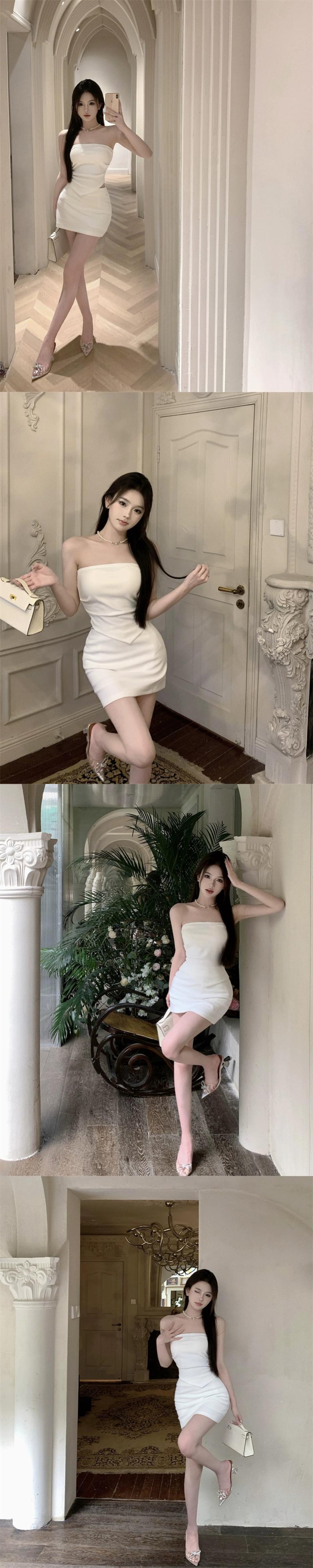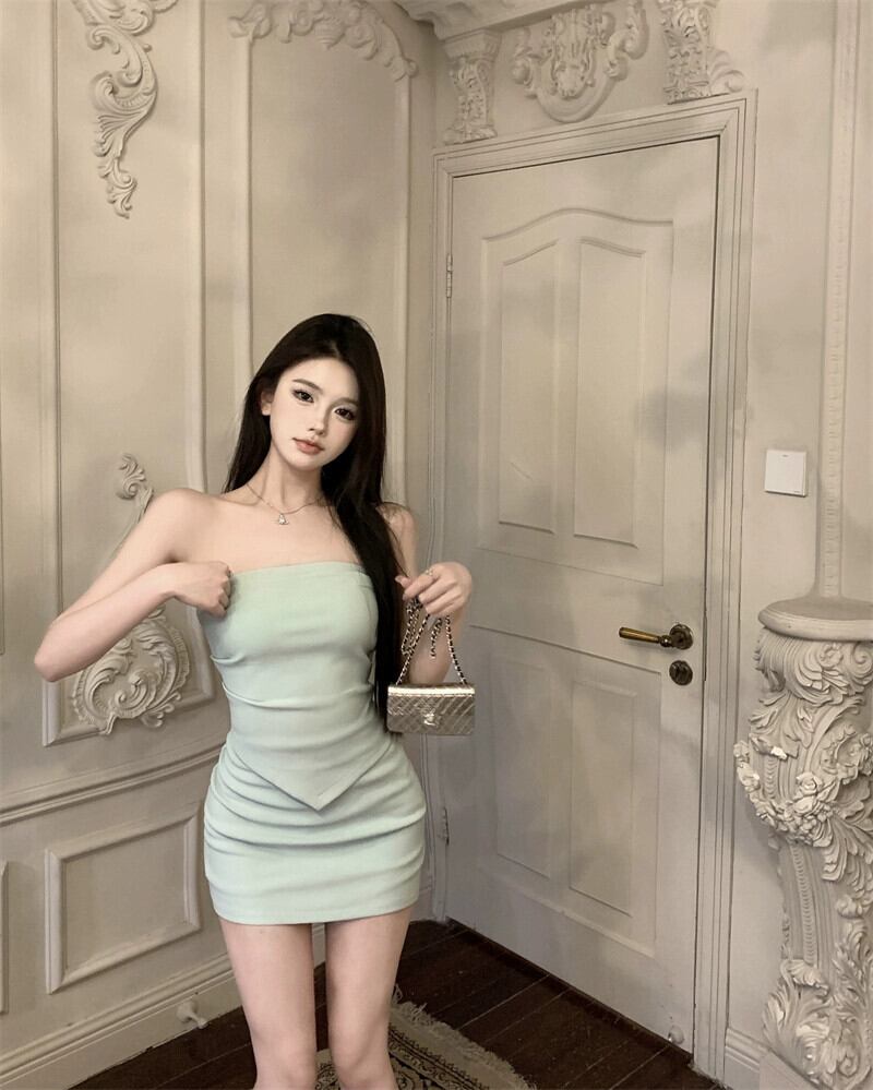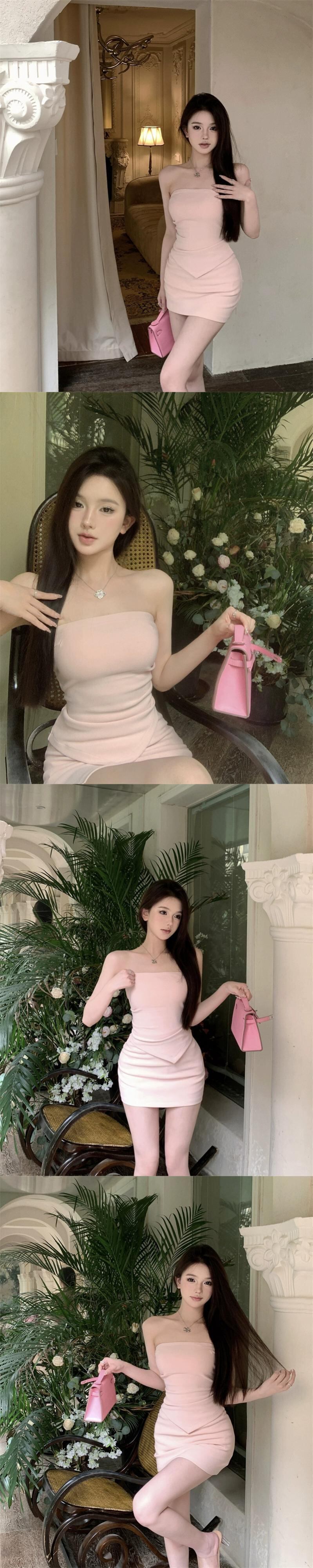 夏の女性の純粋な欲望スタイル甘い遊び心のあるスーツセクシーなチューブトップ + ハイウエストバッグヒップショートスカート 2 点セット ハイウェスト 大人ガーリー スウィート キュート カジュアル サマー 夏物 ピュア yeyij6590366124