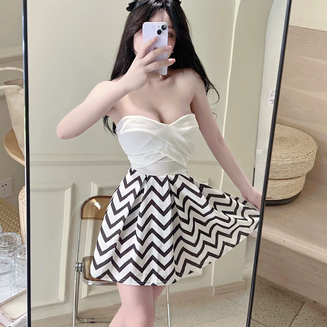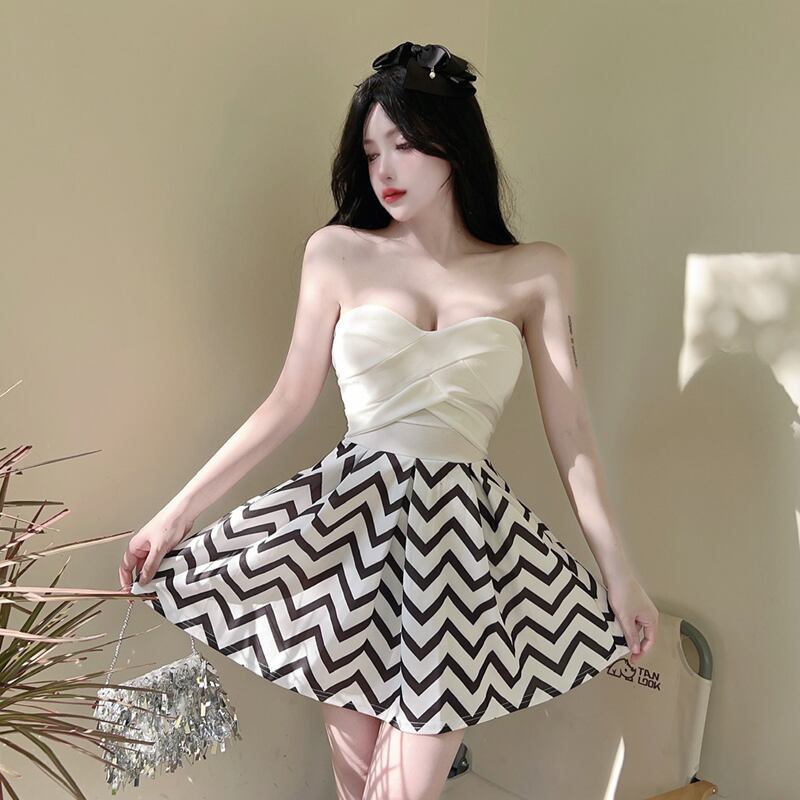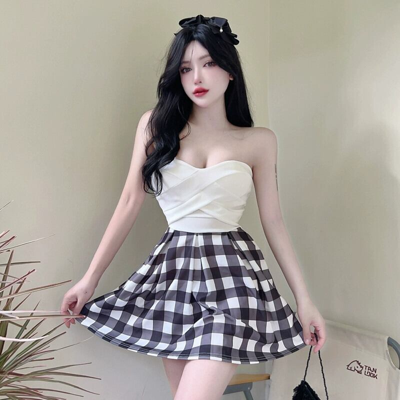 夜の作業作業服ペディキュア女性技術者の服セクシーなナイトクラブの女性のチェック柄ステッチチューブトップドレス yeyij20905680705