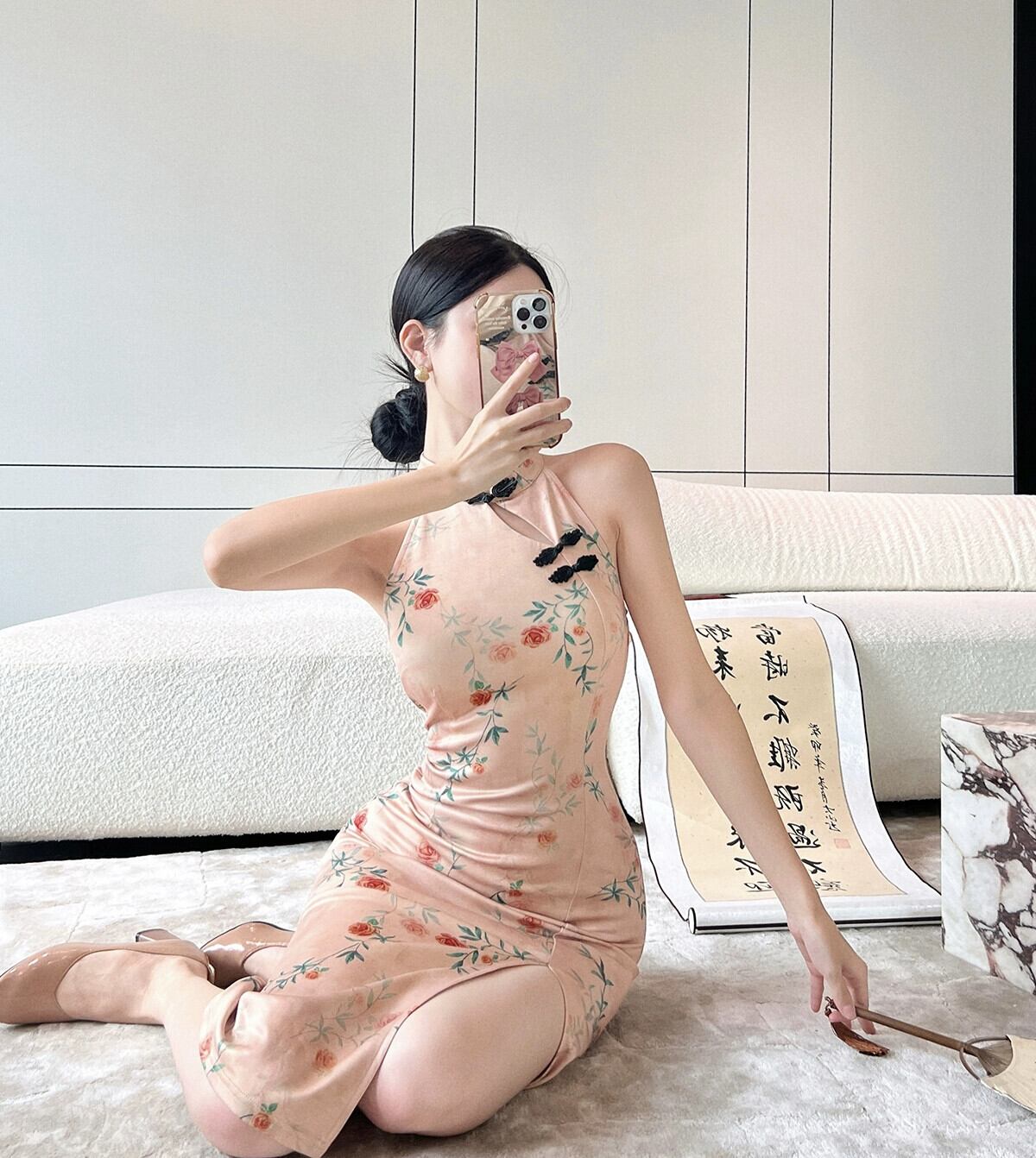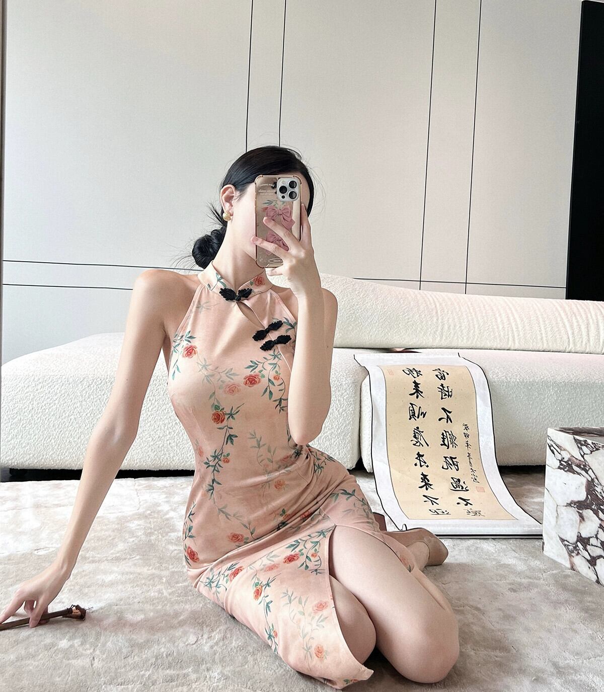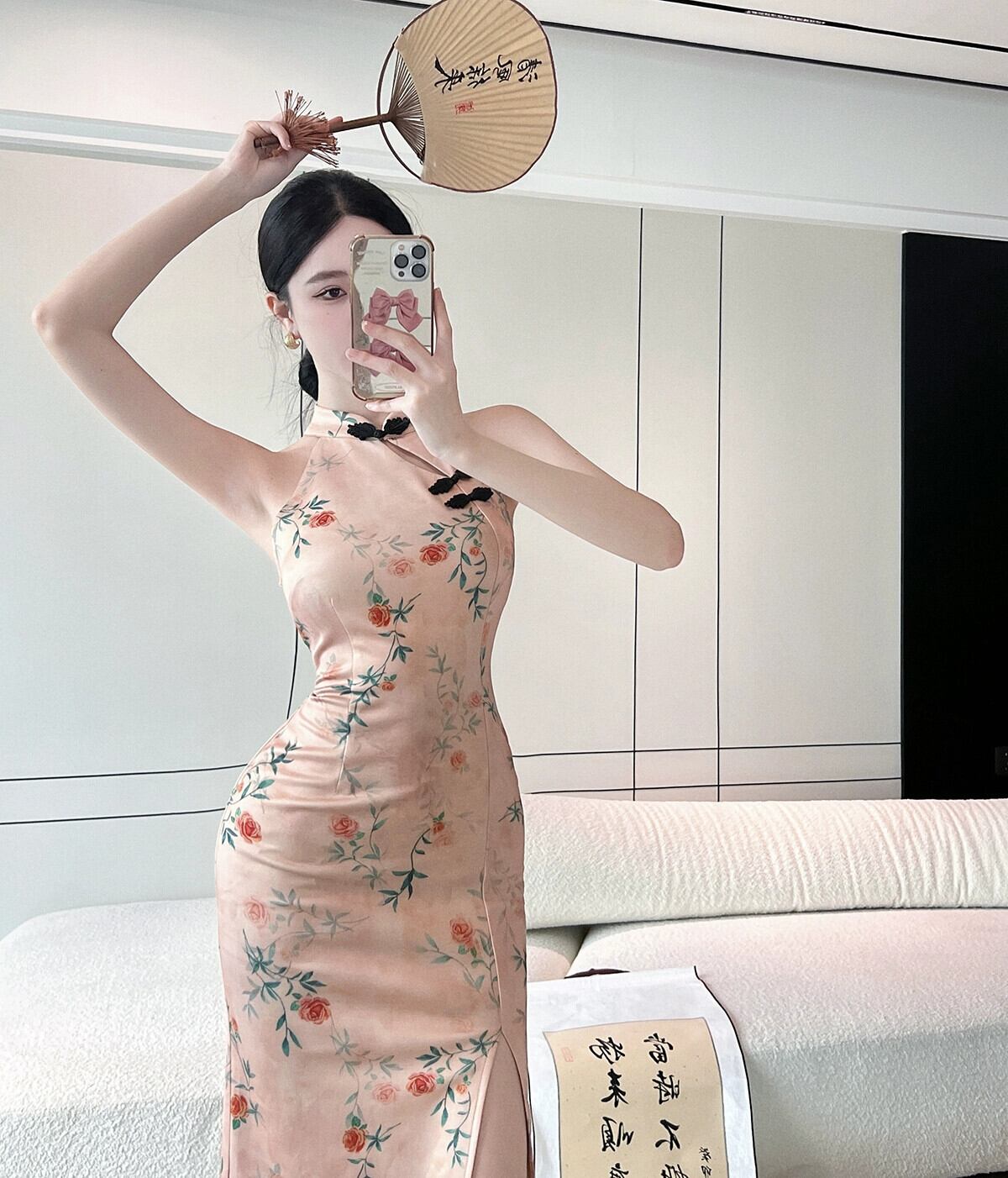 ライブ服女性アンカー pogenic 中国風セクシーなノースリーブミッドレングス改良チャイナドレス yeyij25352008985