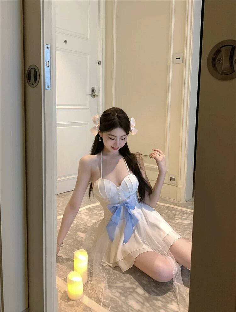 誕生日ドレス レディース 高級感 フレンチメッシュ スーパーフェアリープリンセスドレス 大人セクシーふわふわサスペンダードレス yeyij24897826037