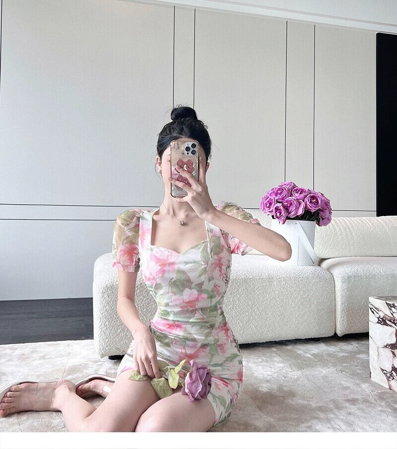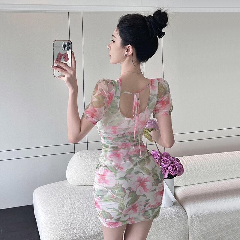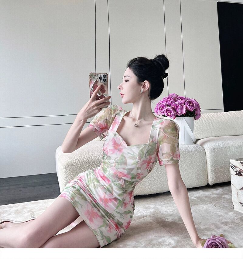 ライブ服女性アンカー pogenic ハイエンド純粋な欲望スタイルフレンチレトロプリントセクシーなスクエアカラーシフォンドレス ピュア スクウェア yeyij17350088511