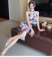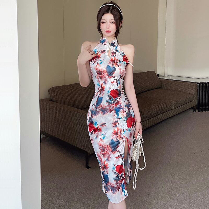チャイナイブニングドレス女性 2023 新しいハイエンド感覚改善された中国風のセクシーなストラップレスホルターネックドレス yeyij30888863168
