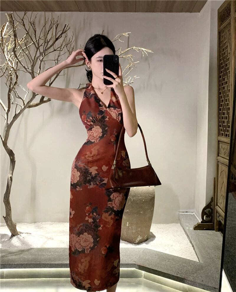 イブニングドレス女性 2023 新しいハイエンドセンスパーティーは通常レトロなセクシーな背中の開いたホルターネックドレスを着用できます yeyij56644004766