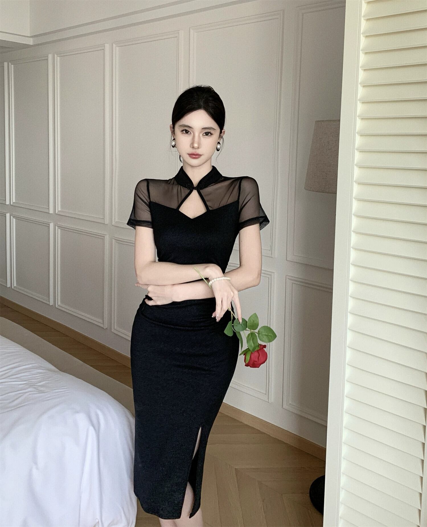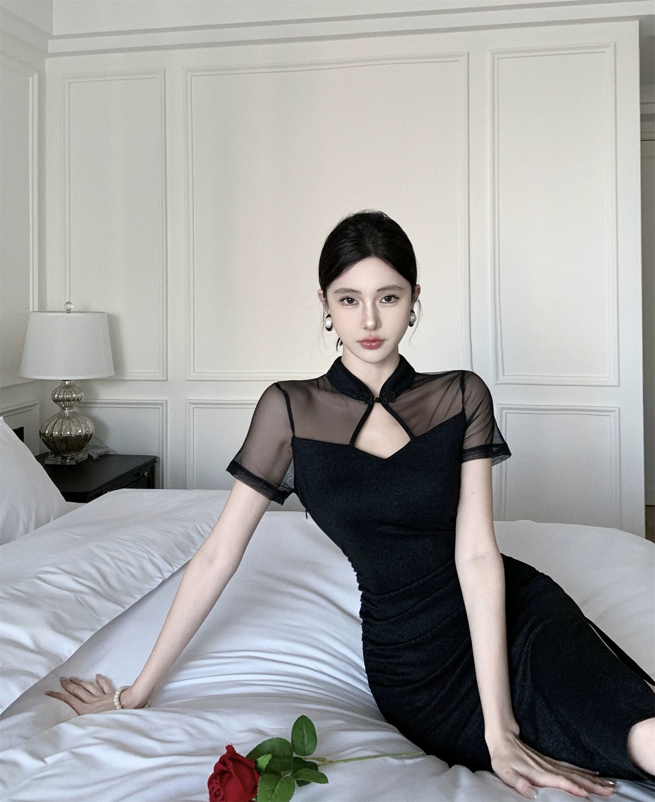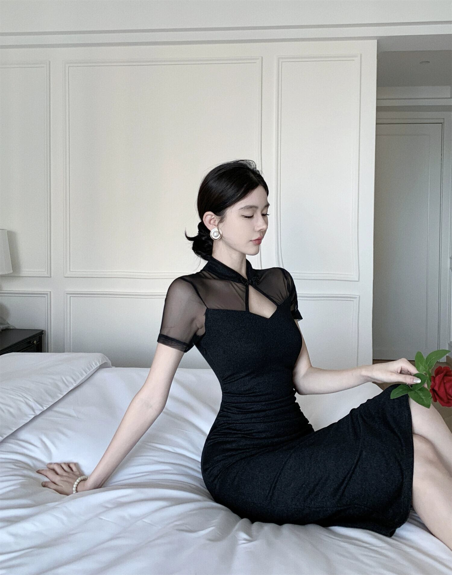 ライブ服アンカー Pogenic 若いセクシーな胸中空メッシュステッチ改良されたチャイナ ドレス yeyij34889122305