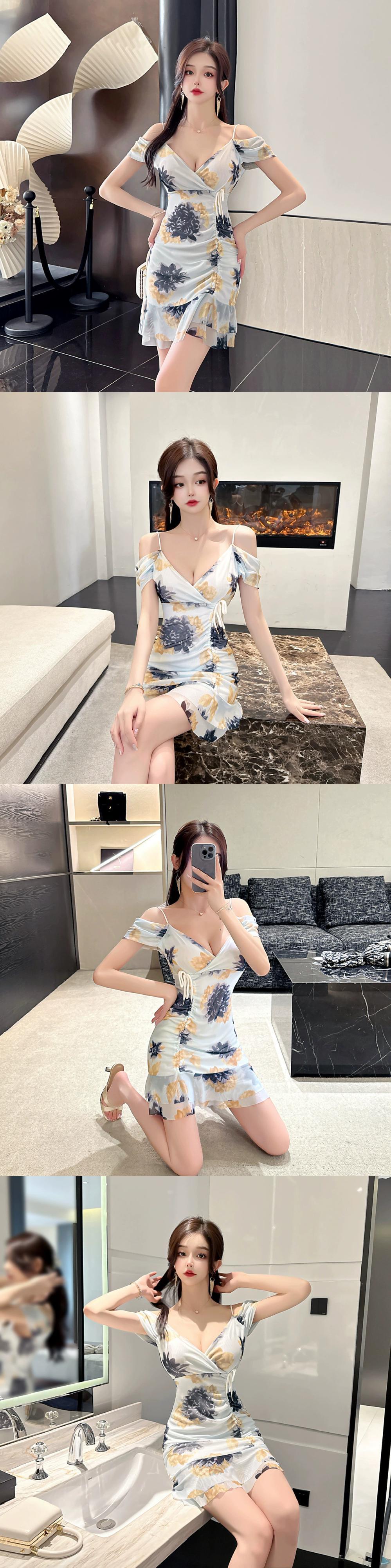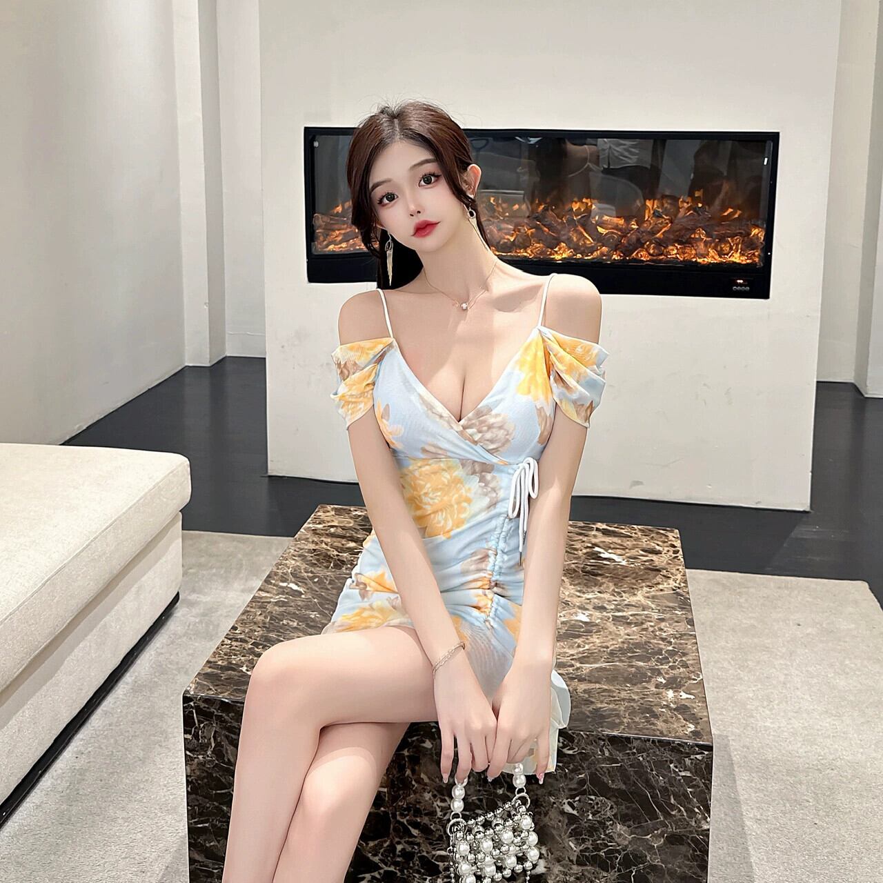 ナイトクラブの女性の夜のフィールド技術者作業服セクシーなストラップレスローカットディープ V ネック半袖フィッシュテールサスペンダードレス Vネック yeyij88863162216