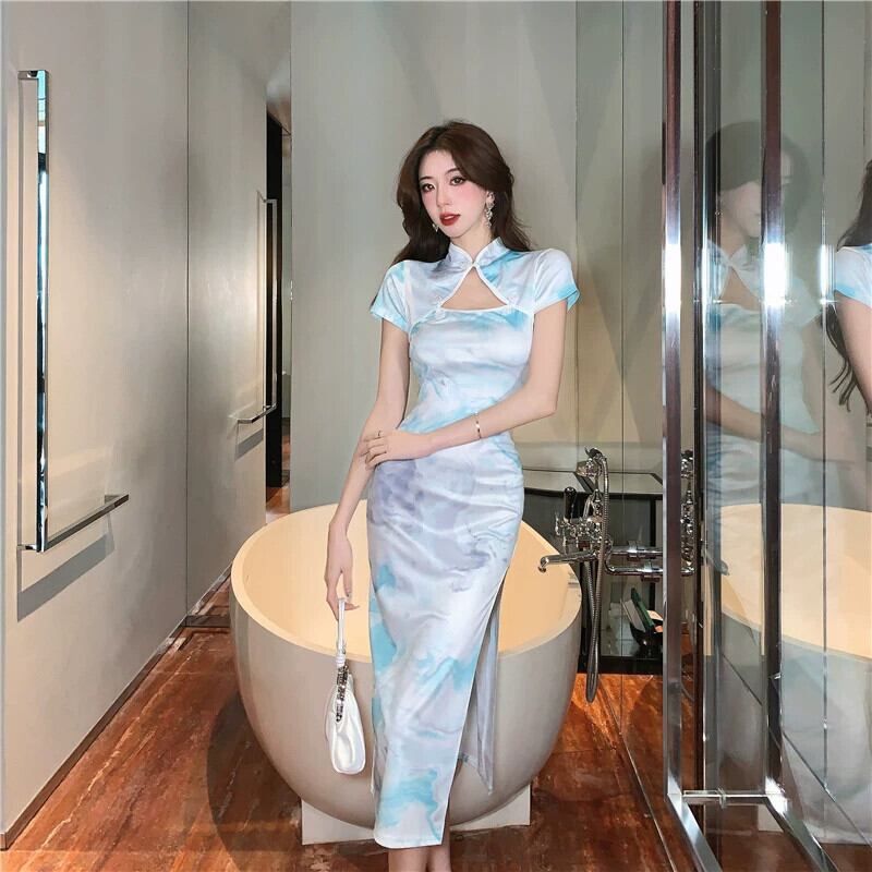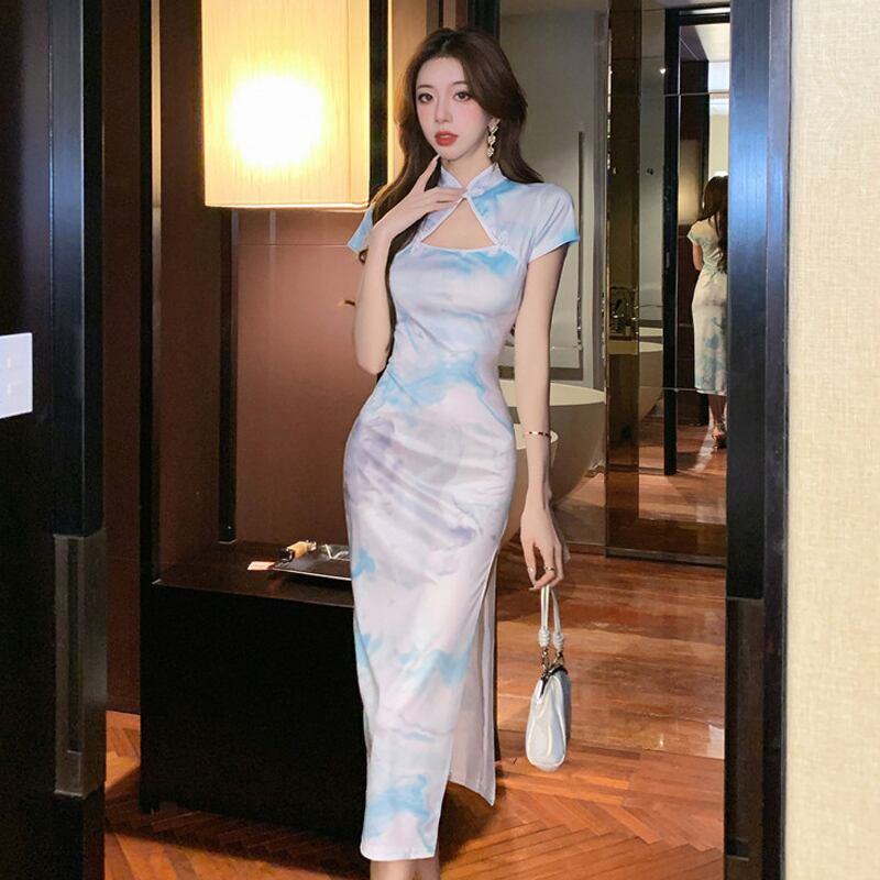 中国風のチャイナドレス 2023 新しい若い改良された毎日のセクシーな中空半袖ミッドレングスドレス yeyij16722913532