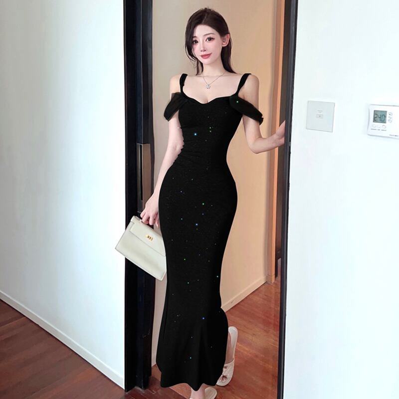 イブニングドレス女性 2023 新しいハイエンドセンス宴会気質ロングスカートメッシュステッチスパークリングセクシーなドレス yeyij87503834244