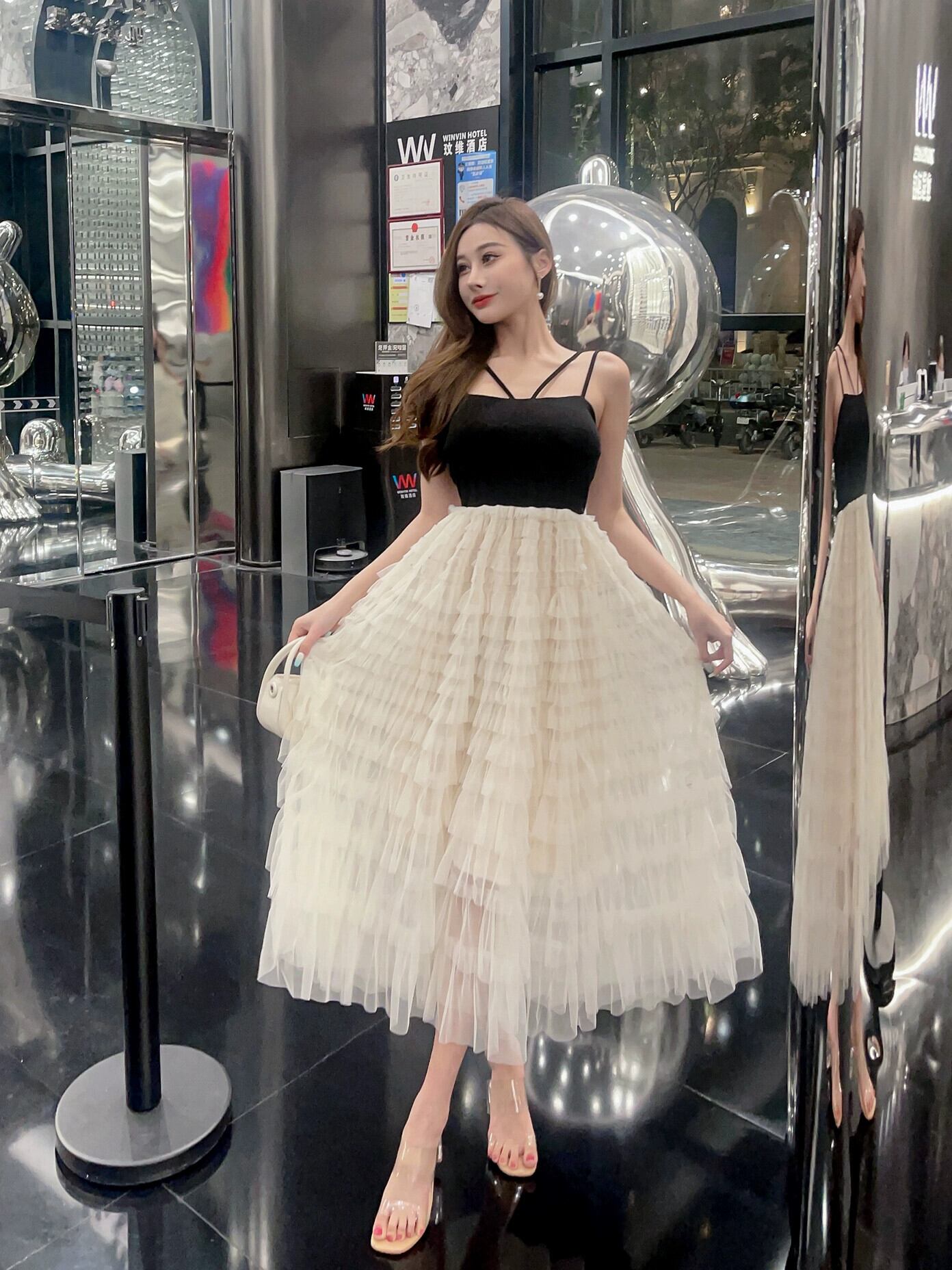イブニングドレスの女性 2023 新しいイブニングドレスの女性のロングスカートセクシーなスーパー妖精メッシュステッチファッションサスペンダードレス yeyij38945912564