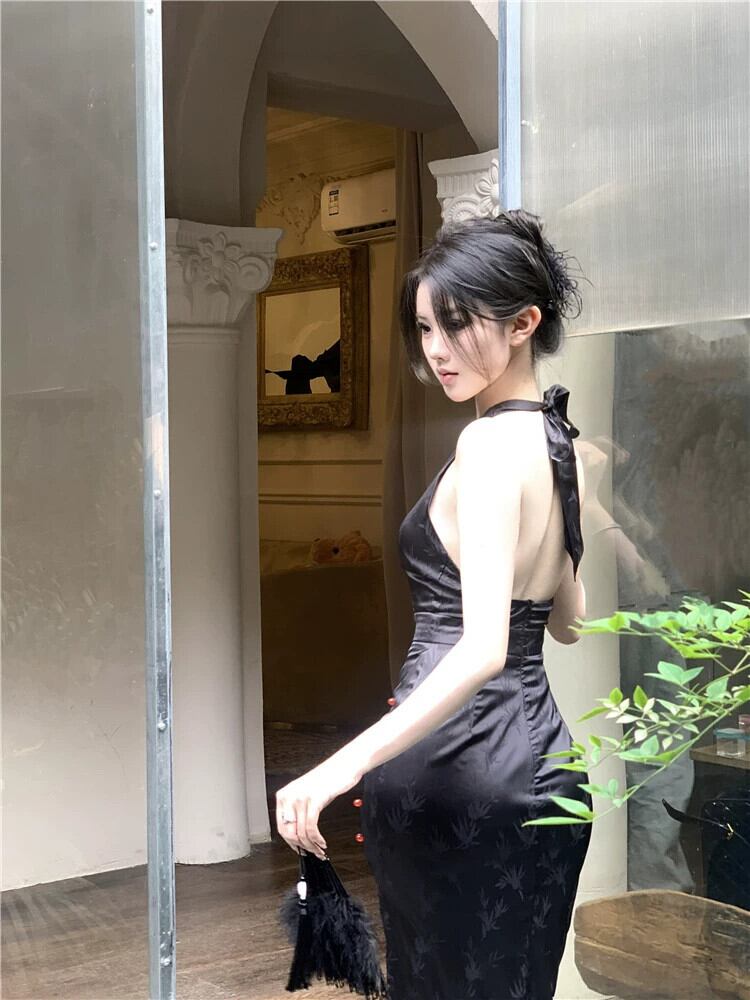 チャイナイブニングドレスハイエンドライト高級ニッチ小さなドレスパーティー気質中国風のセクシーな背中の開いたホルターネックドレス yeyij33115432840
