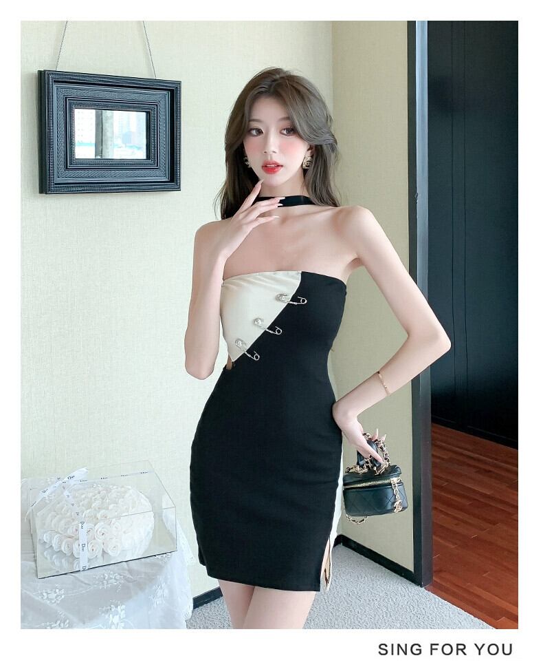 ダンスアンカー服バージャンプディスコ服女性衣装ヒットカラーセクシーなバッグヒップチューブトップホルターネックドレス yeyij65258258362