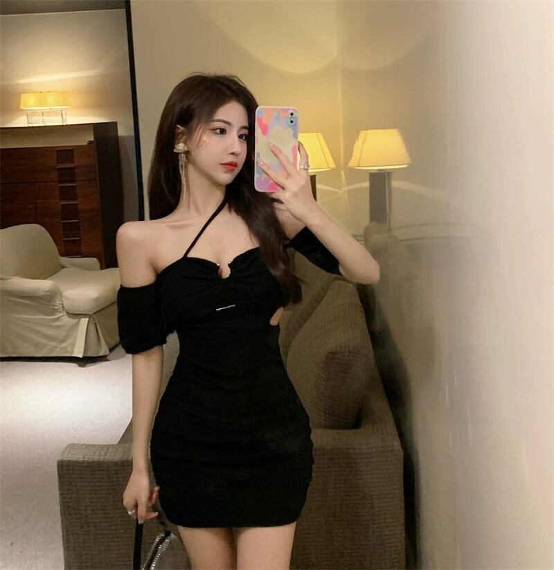 ダンスアンカー服バージャンプディスコ服女性の衣装黒のセクシーなチューブトップワンショルダーサスペンダードレス ブラック yeyij86766965358