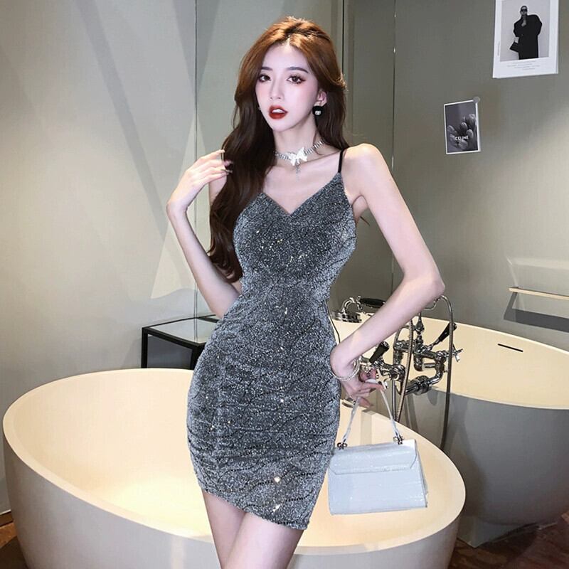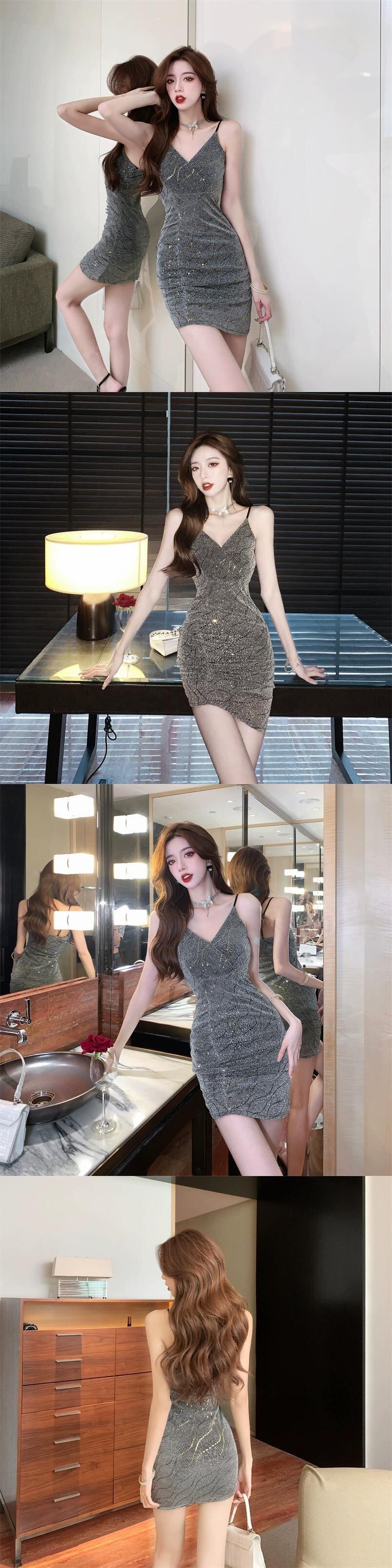 夜の作業服オーバーオールバーダンスナイトクラブ婦人服キラキラスパンコールセクシーな V ネックサスペンダードレス Vネック yeyij28688581167