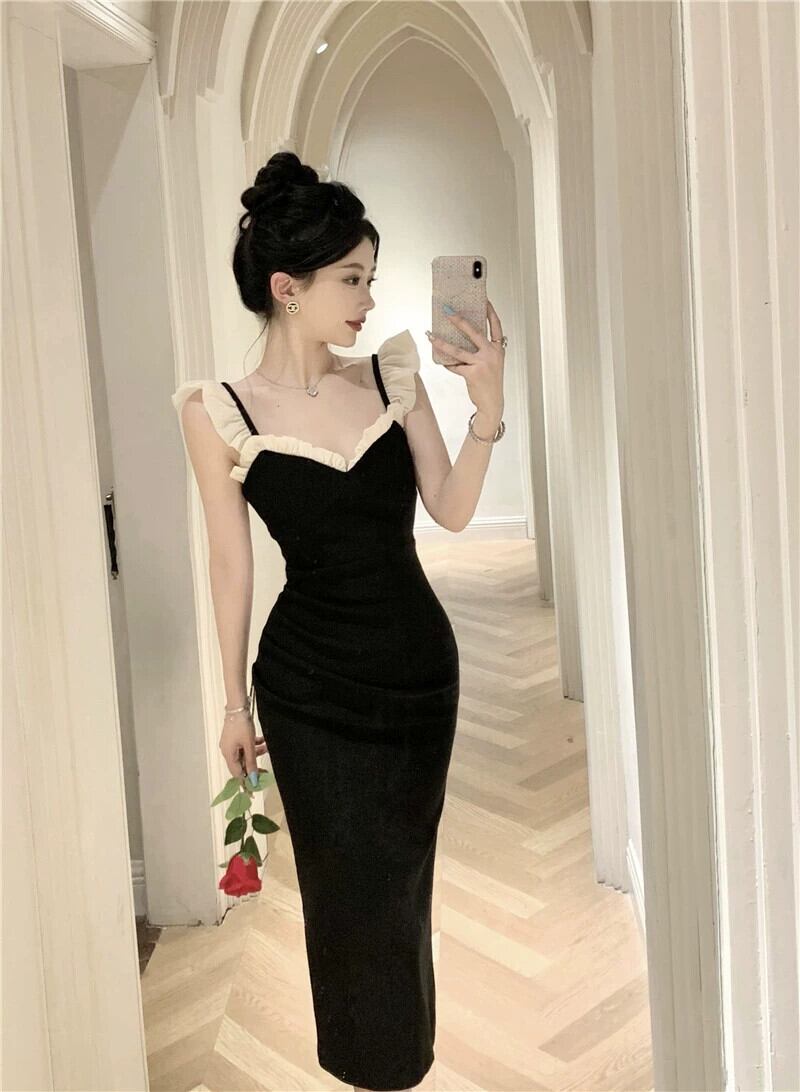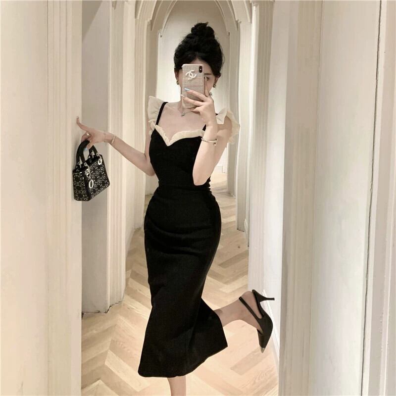 ヘップバーン スタイル イブニング ドレス スカート 女性らしさ ライト ラグジュアリー ニッチ ハイエンド フレンチ セクシー ブラック 見事なサスペンダー ドレス yeyij19767044632