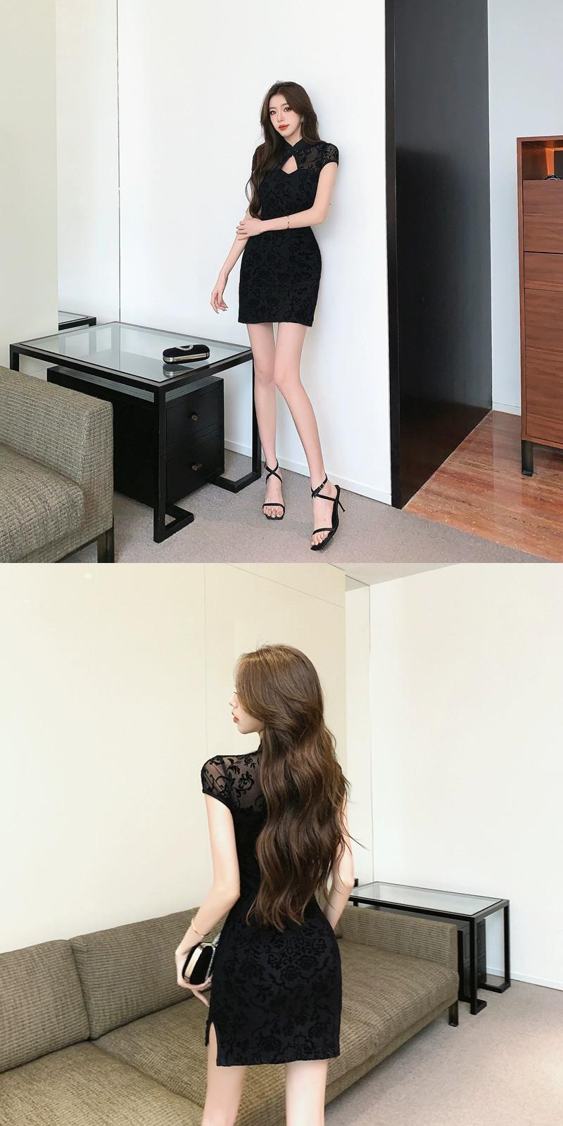 ライブ服アンカー Pogenic 若い女の子のセクシーな中空メッシュ改良されたチャイナ ドレス yeyij71865850746