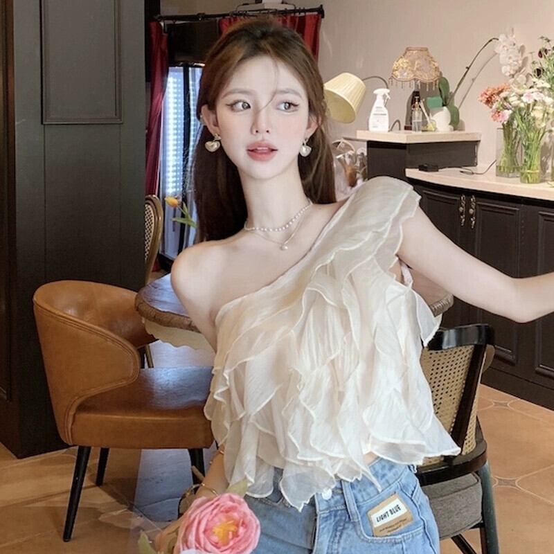 ライブ衣装、女性アンカー、ポージェニックフレンチスタイル、スーパーフェアリー、ピュアディザイア、セクシーな斜め襟、ワンショルダーオフショルダートップス yeyij99229430467