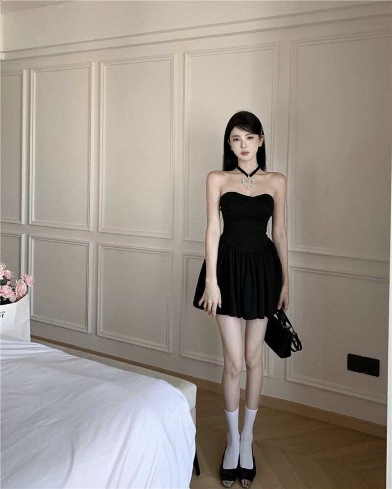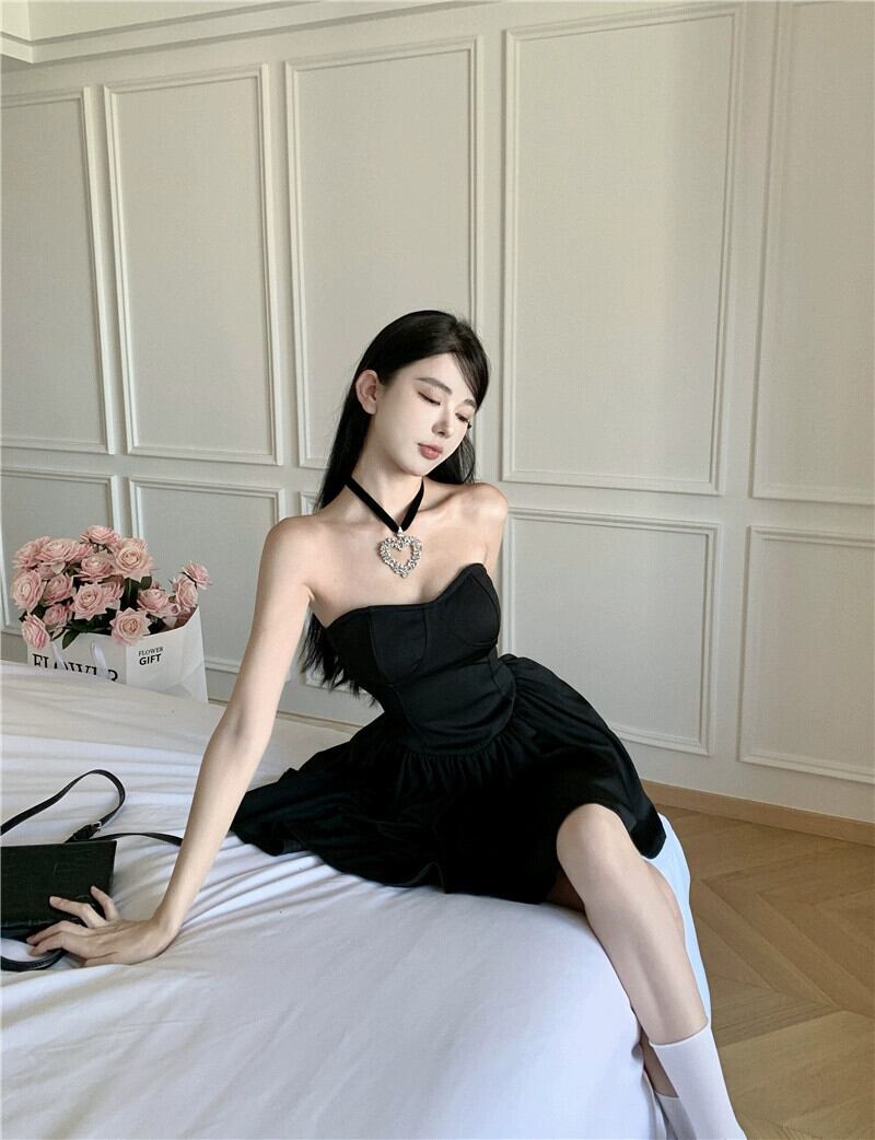 -エンドリトルブラックドレス女性サマーネットレッドアンカーライブブラックセクシーなふわふわショートチューブトップドレス 夏物 yeyij7600695753