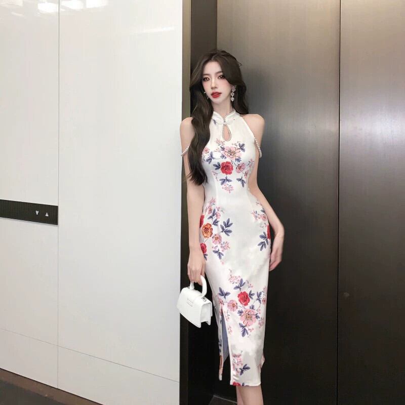チャイナドレスイブニングドレスハイエンドライト高級ニッチスモールドレスパーティー気質ビーズ中国風のミドルドレス yeyij68227504346