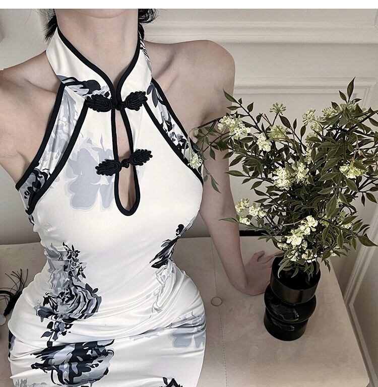 スタイルチャイナドレス若い生放送服女性アンカー服レトロ中国風のセクシーなストラップレスホルターネックドレス yeyij96950617161