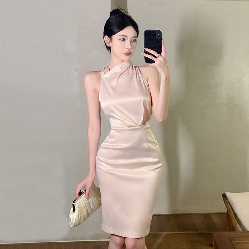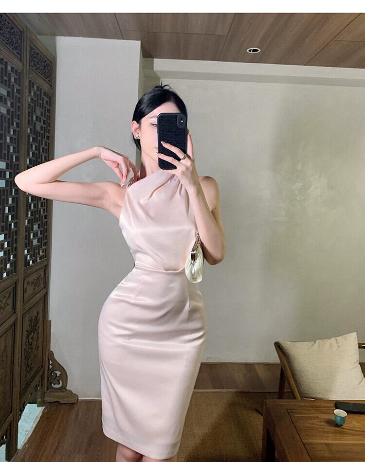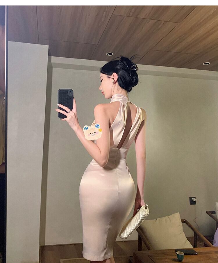 気質ドレス女神ファン年次総会-エンドセンスギャザリング軽く馴染みロイヤルシスタースタイルセクシーな背中の開いたホルターネックドレス yeyij19278372301