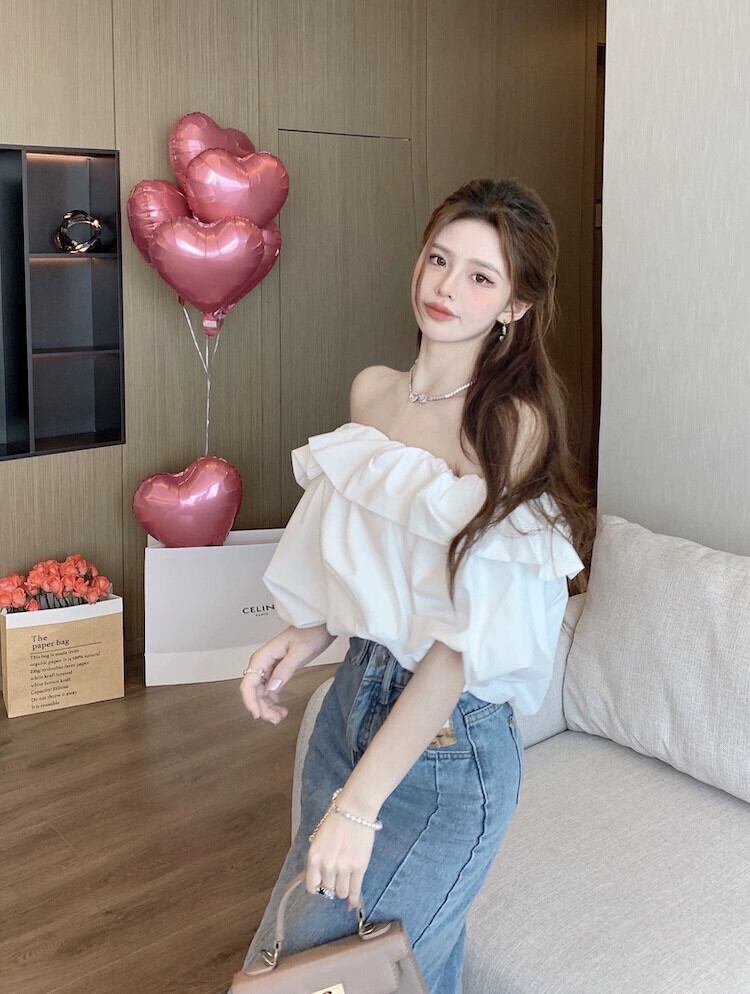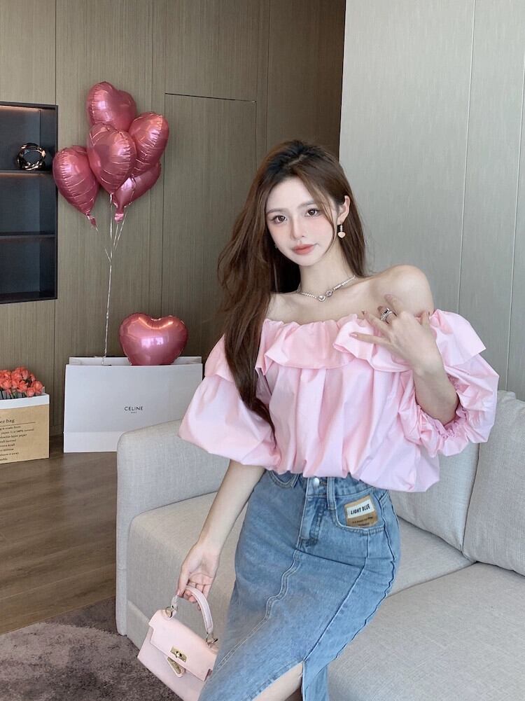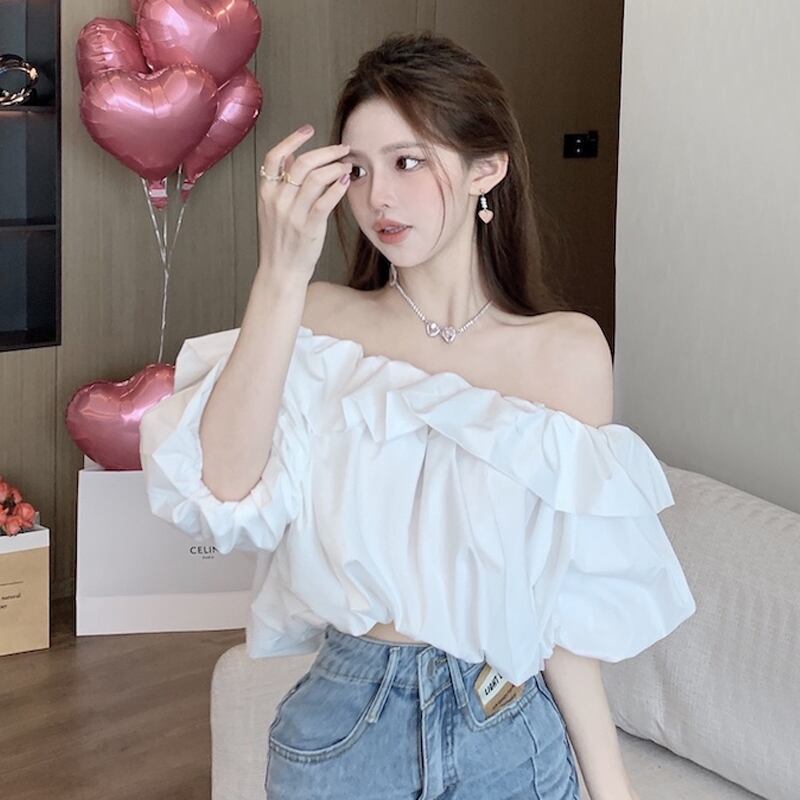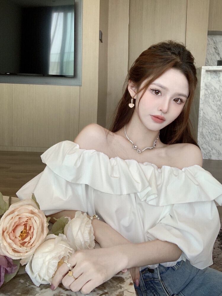 ライブ服女性アンカー pogenic フレンチ スーパー フェアリー甘い純粋な欲望スタイルのセクシーなワンネック シャツ オフショルダー トップ 大人ガーリー スウィート キュート カジュアル ピュア yeyij49164913258