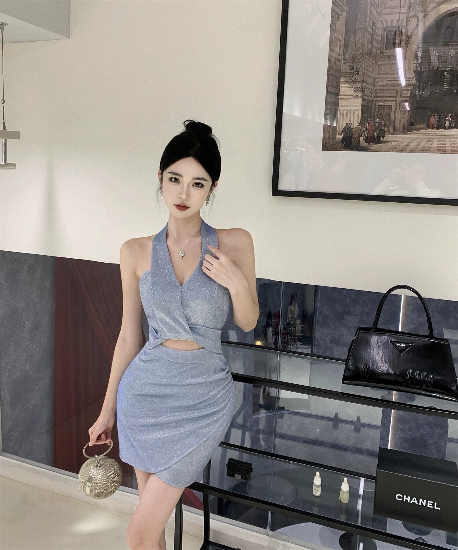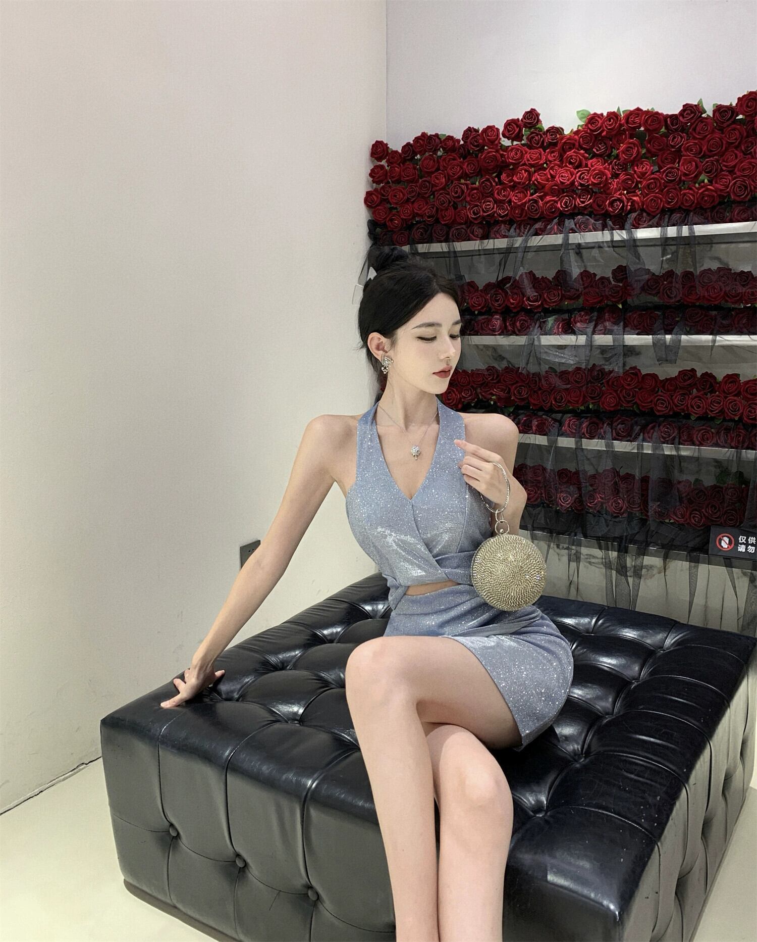 宴会気質小さなドレスショート高品質光沢のあるシルクイブニング女性のセクシーな背中の開いたホルターネックドレス yeyij74641036433