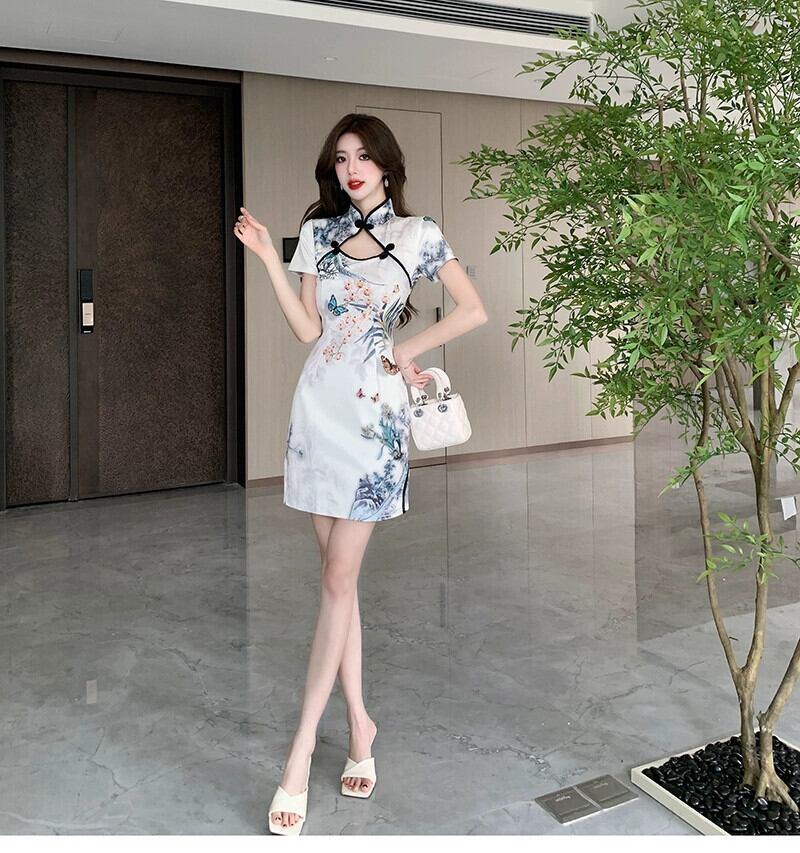 ライブ服アンカー Pogenic 若いレトロなプリントのセクシーな中空改良されたチャイナ ドレス yeyij4650494118