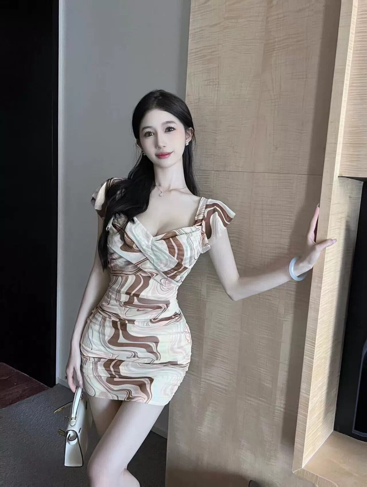 ナイトクラブの女性の夜の作業服技術者作業服気質セクシーなローカット深い V ネックフライングスリーブドレス Vネック yeyij85550858109