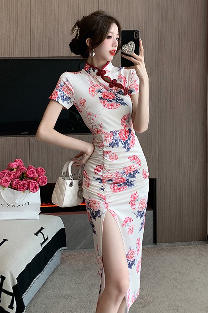 生放送女性アンカー服新しいスタイルのチャイナドレス若いハイエンド気質国民潮プリントセクシーなミッドレングスドレス yeyij75304903099