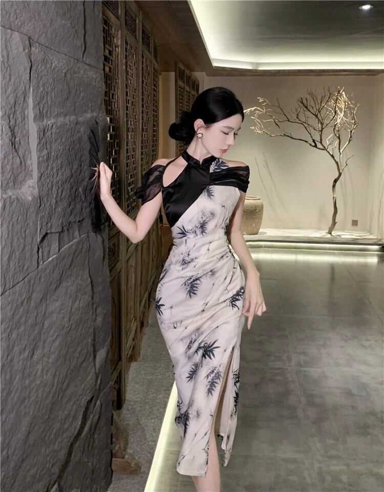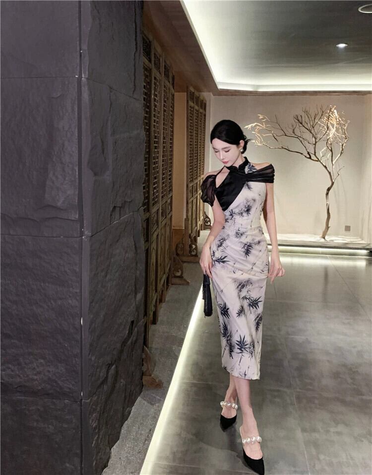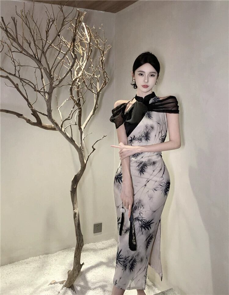 チャイナドレスイブニングドレスハイエンドライト高級ニッチスモールドレスパーティー中国風ハイエンドセクシーなオフショルダードレス yeyij37985009298