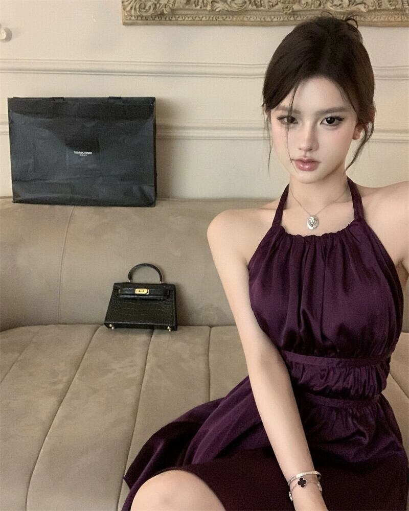 年次総会パーティーフレンチスタイルのドレスハイレベルの気質セクシーな背中の開いたショートウエストウエスト細いホルターネックドレス yeyij66855703402
