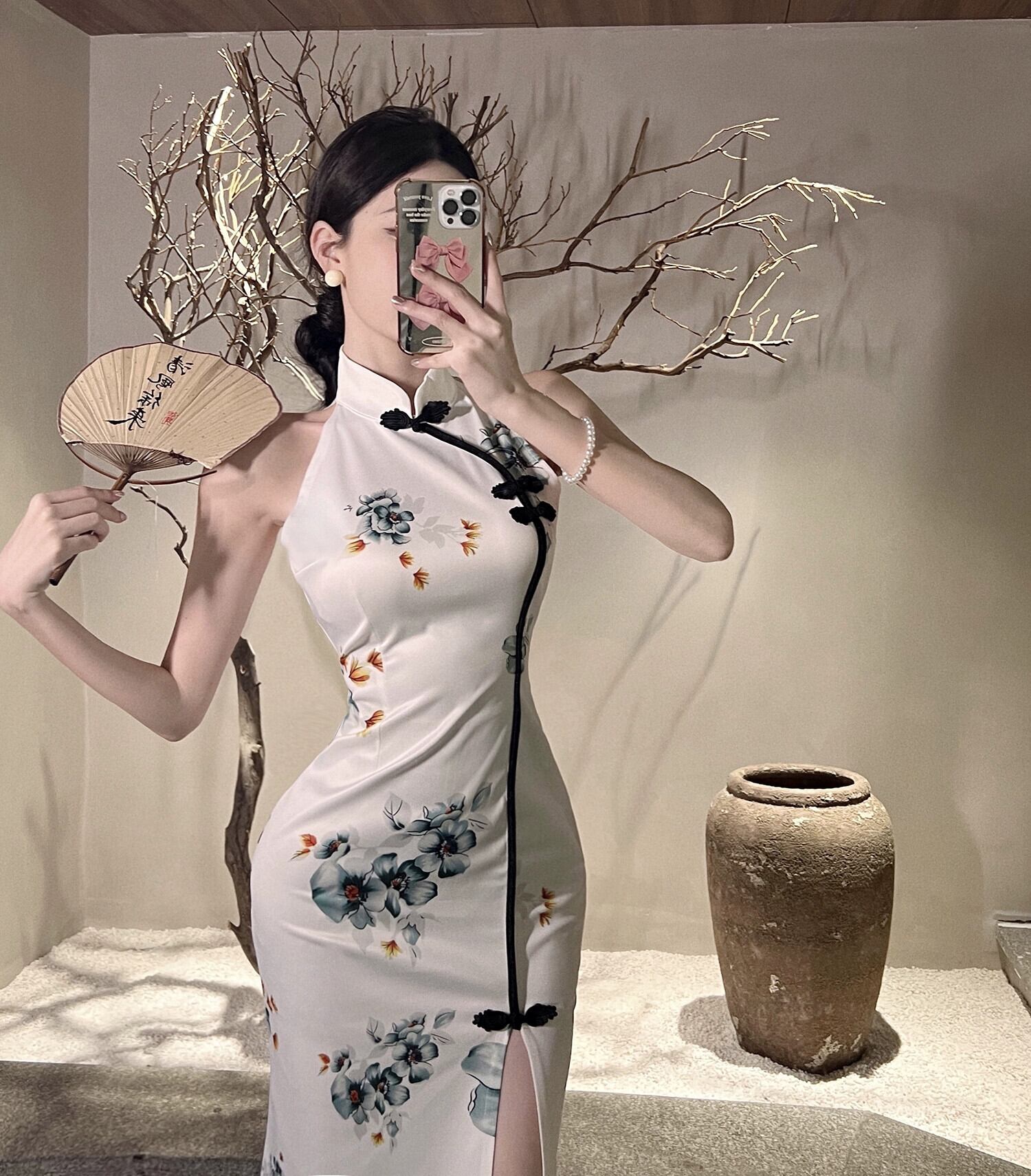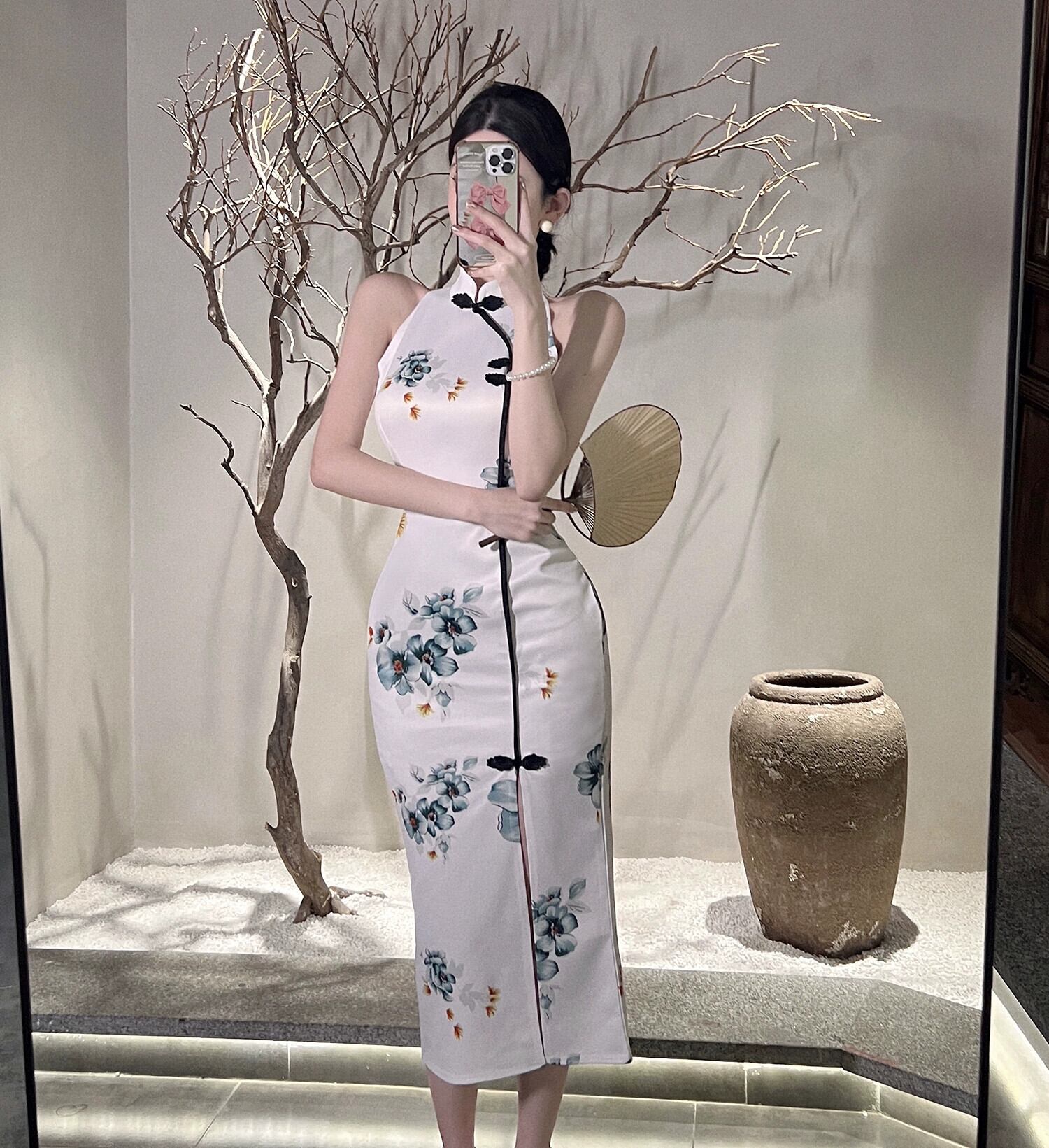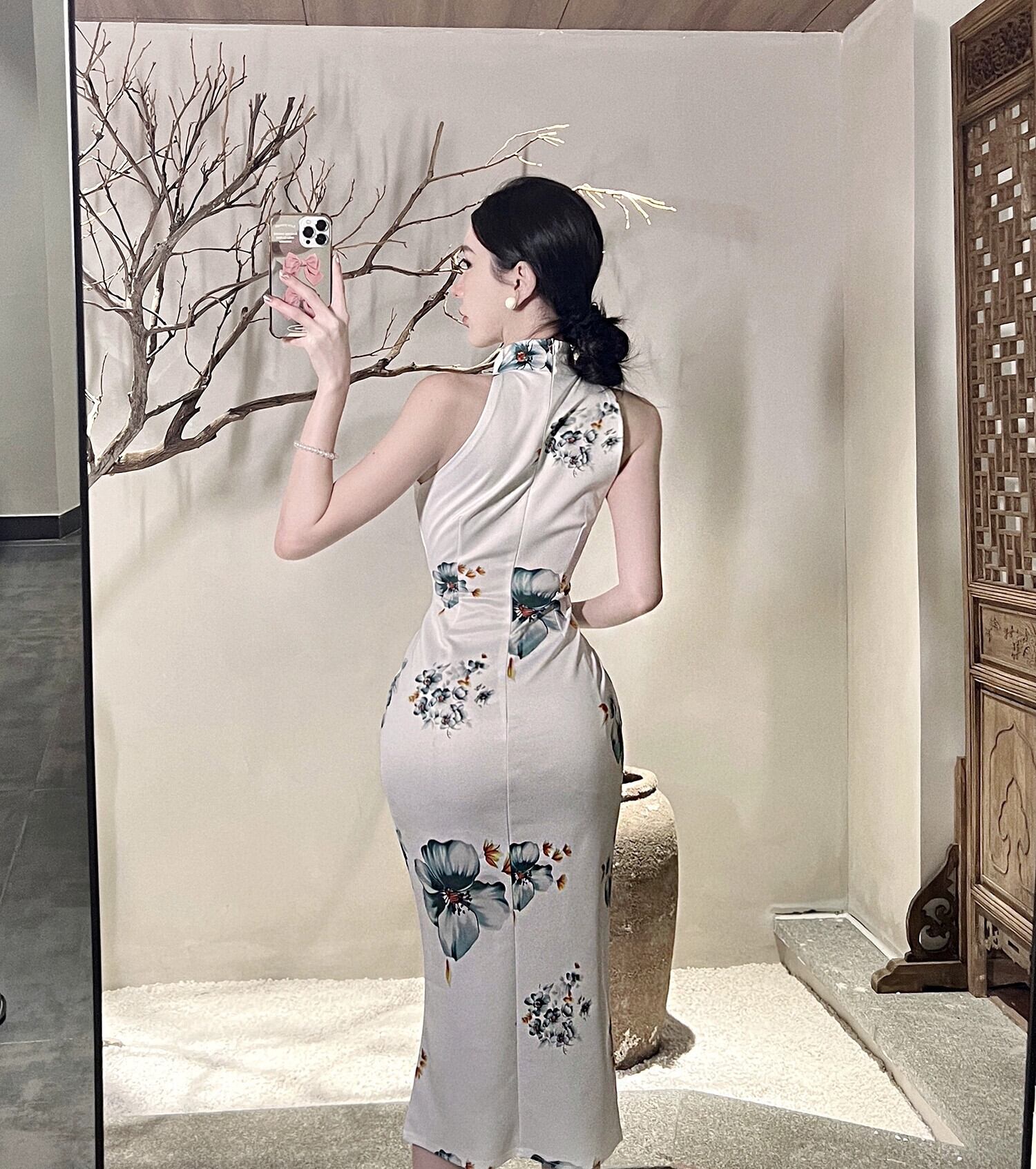 ライブ服女性アンカー pogenic レトロプリント中国風セクシーなオフショルダー改良されたチャイナドレス yeyij18473466364