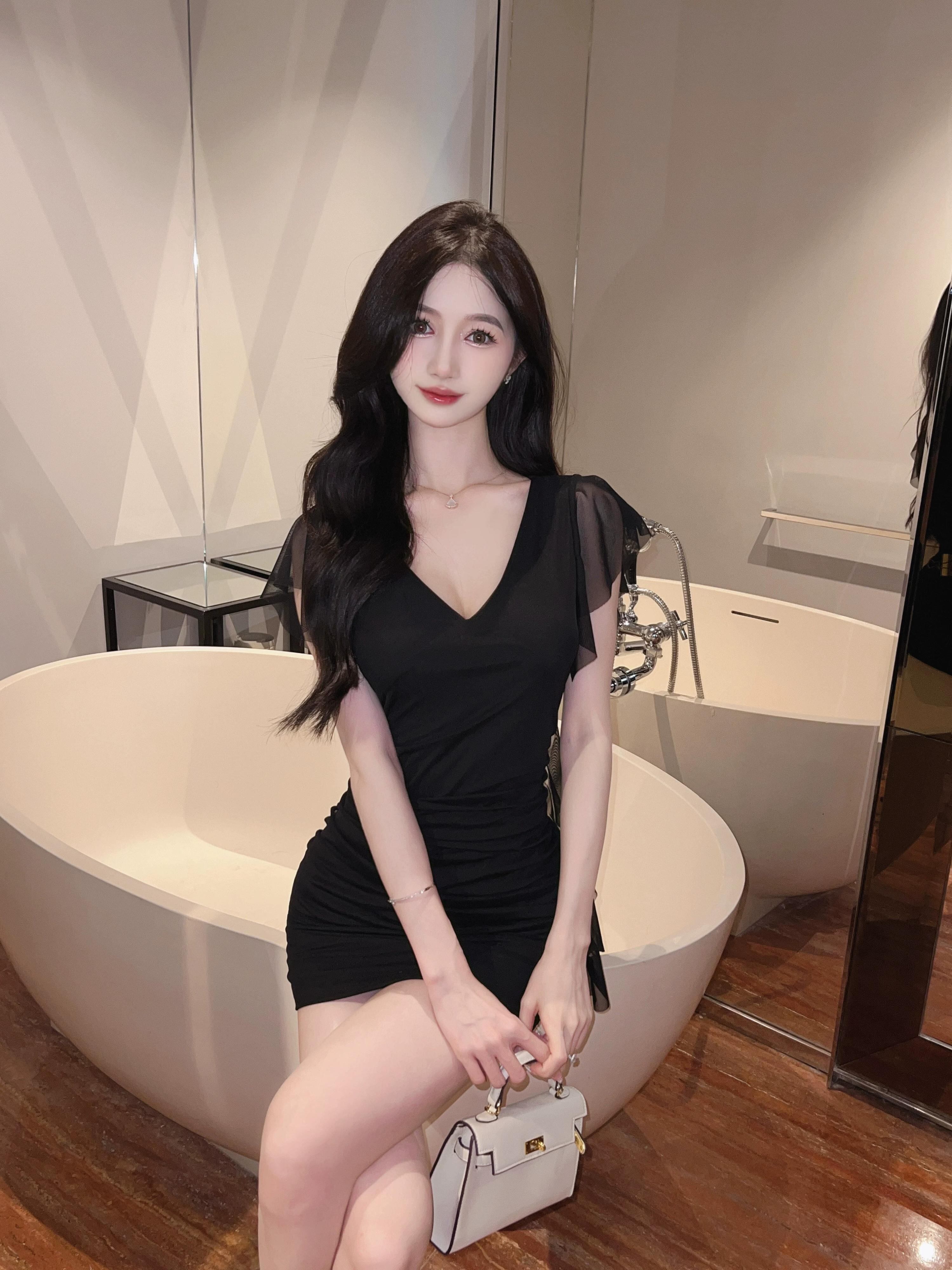 フレンチシフォンドレスナイト女性のナイトクラブ技術者作業服ウエストスリムセクシーな V ネックパッケージヒップスカート Vネック yeyij23177812859