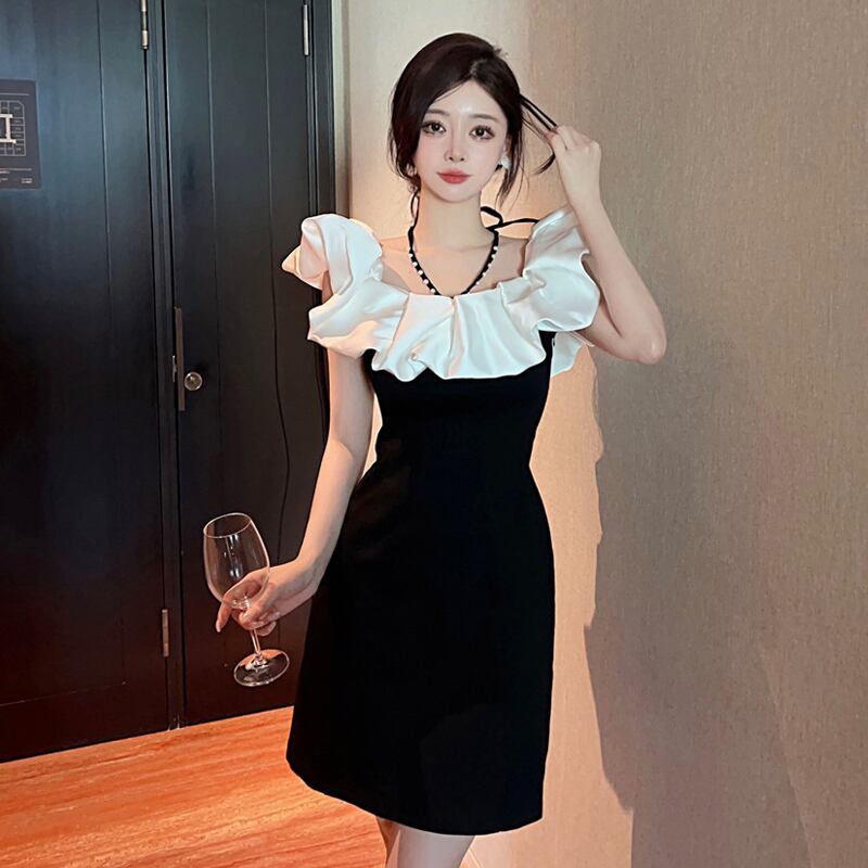 ヘップバーン スタイル イブニング ドレス スカート 女性らしさ ライト ラグジュアリー ニッチ ハイエンド フレンチ セクシー 見事な ワンショルダー サスペンダー ドレス yeyij33455830138
