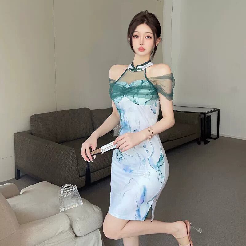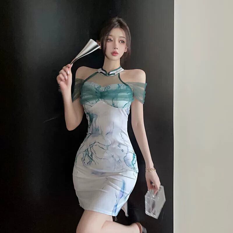 ライブ服女性アンカー服若いセクシーなストラップレスの新しい中国風の改良されたチャイナ ドレス yeyij16682193857