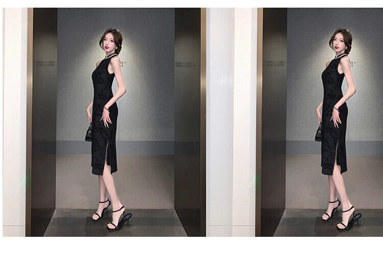 中国風国民風改良チャイナドレス女性の夏黒ニッチハイエンドセクシーなスリムバッグヒップドレス ブラック サマー 夏物 yeyij40978484285