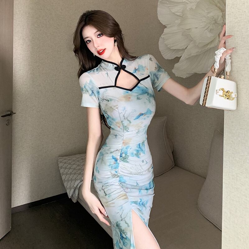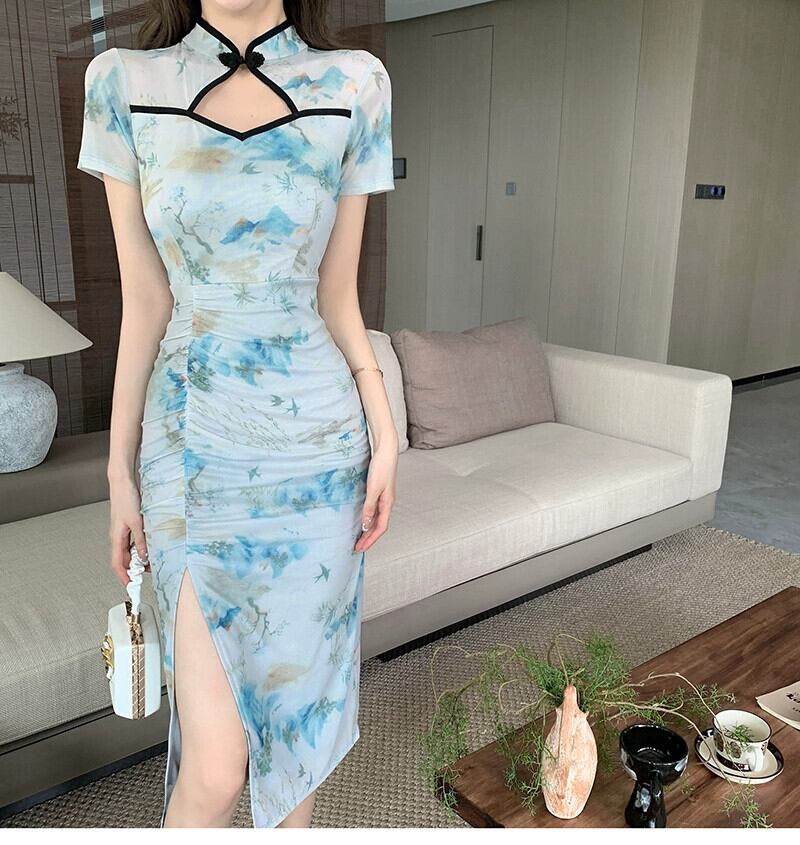 -スタイルチャイナドレス若いハイエンド気質生放送アンカー服女性pogenic中国風ミッドレングスドレス yeyij92736401424