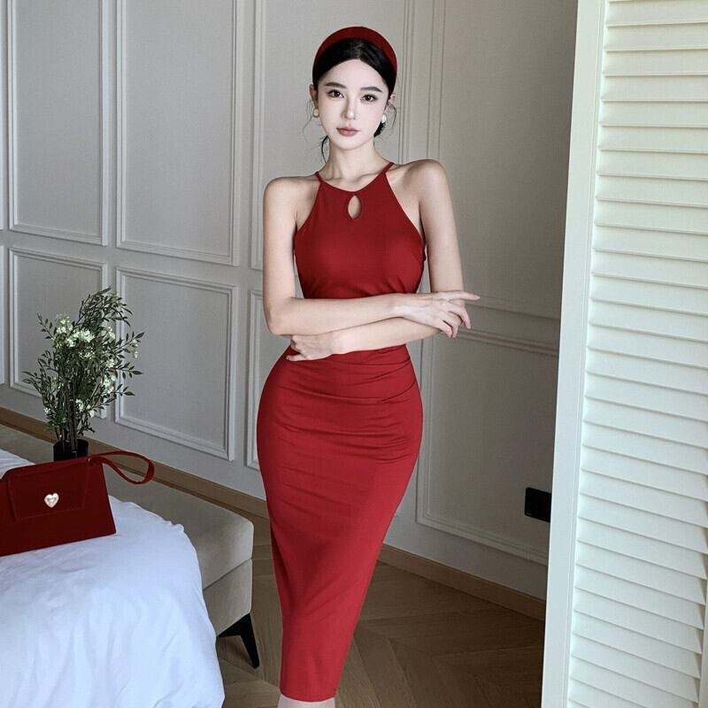 夏の婦人服 2023 新しいハイコールドロイヤルシスタースタイル気質女神ファンセクシーな中空スリットハンギングネックドレス サマー 夏物 yeyij71015587680