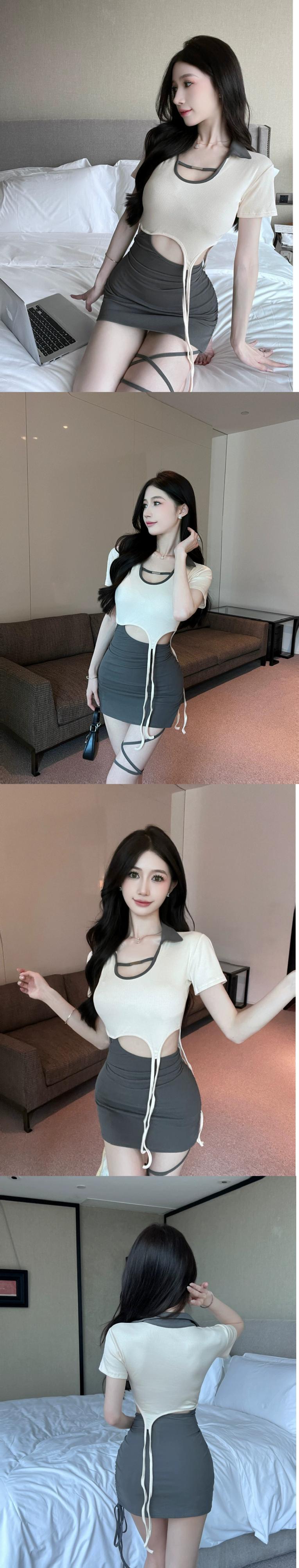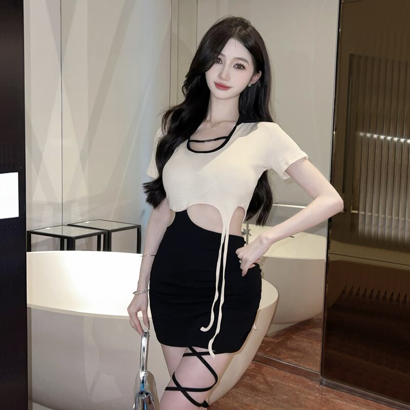 ライブ服女性アンカー pogenic ハイエンド純粋な欲望スタイル中空アウトウエストステッチ偽ツーピースバッグヒップドレス ピュア yeyij79514276386