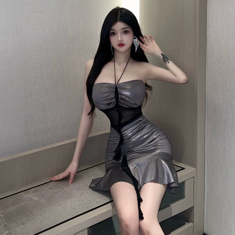 ダンスアンカー服バージャンプディスコ服女性ドレス光沢のある顔セクシーなチューブトップホルターネックドレス yeyij45752309169